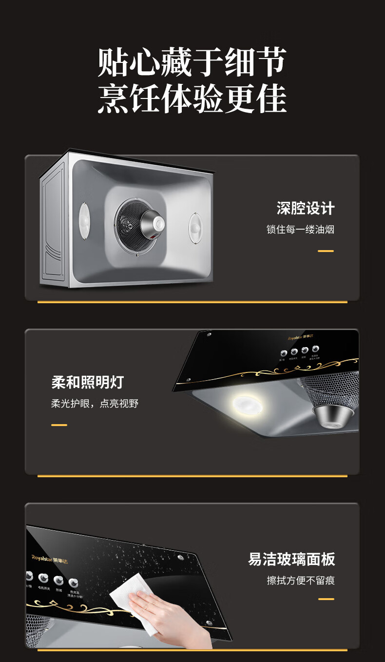 家用电器  > 厨卫大电  > 油烟机  >  荣事达/Royalstar  >  荣事达 大吸力中式油烟机免拆洗脱排油烟机顶吸式排烟机 (不含安装)鎏金面板+机械按键热清洁X10 CXW-268-C621/套