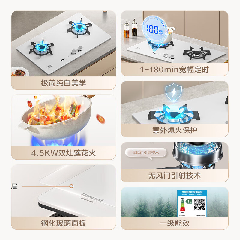 林内(Rinnai)【留白】欧式顶吸白色烟灶套装大吸力油烟机家用莲花火定时燃气灶12EA(W)+06LT(W)【套装商品】 CXW-300-NR12EA(W)/台