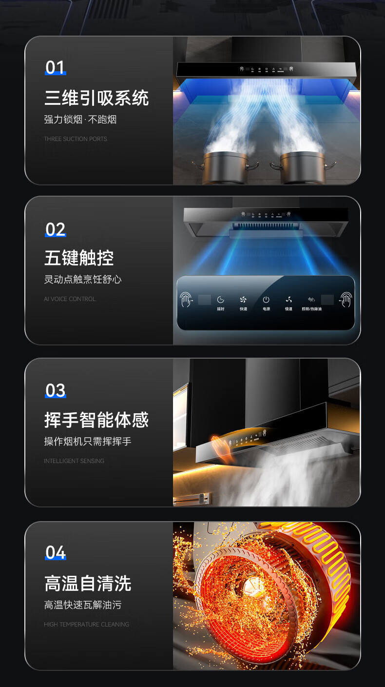 包装清单: 抽油烟机x1;出风口x1;烟管x1;挂板x1;螺丝包