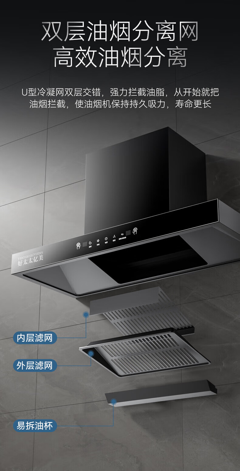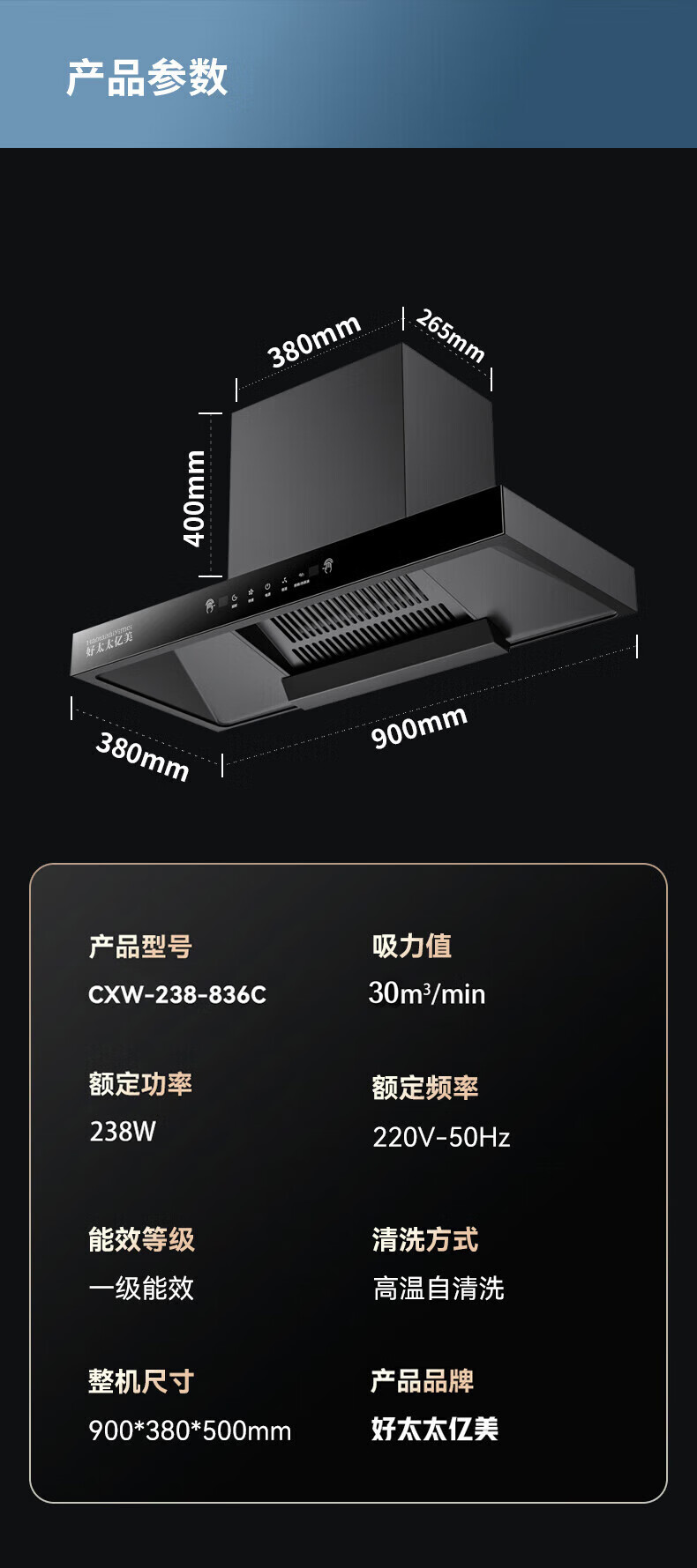 • 商品名称:好太太亿美油烟机套装家用变频顶吸式大风量T型机自动清洗+天然气5.2KW大火力鸳鸯猛火灶836C+B5T CXW-238-836C/台