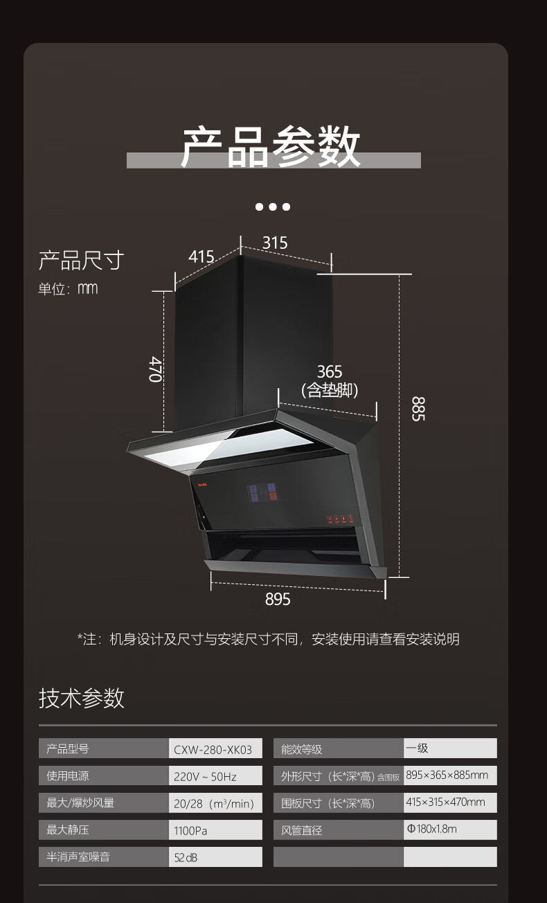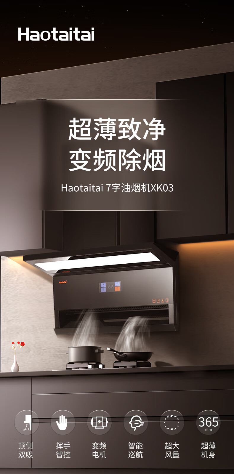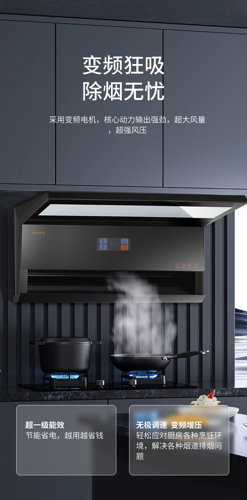 • 商品名称:Haotaitai好太太顶侧双吸抽油烟机家用CXW-280-XK03 28m³大风量1100Pa 智能巡航变频狂吸挥手控制智清洗超薄 CXW-280-XK03/台