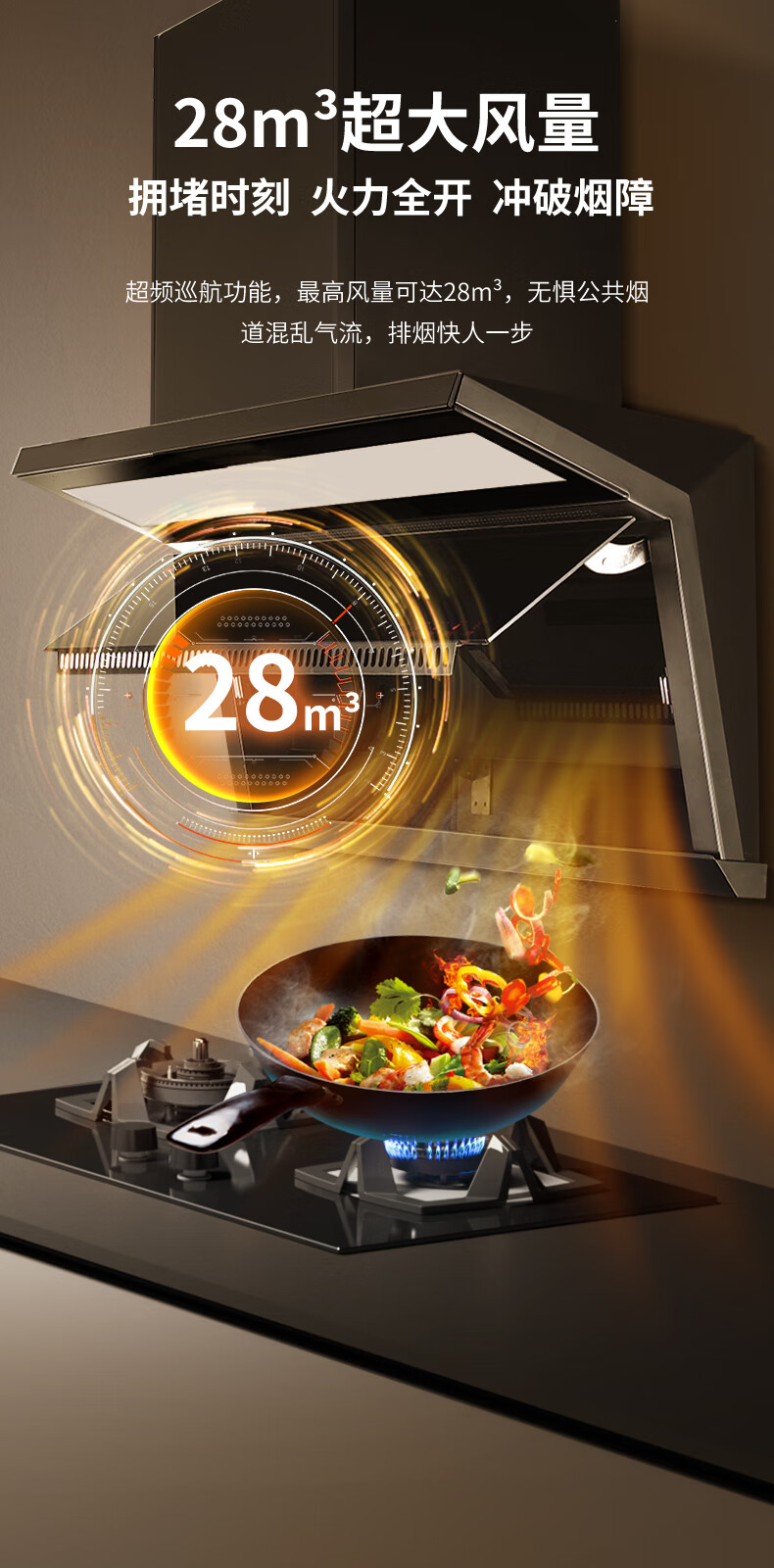 家用电器  > 厨卫大电  > 油烟机  >  Haotaitai  >  Haotaitai好太太顶侧双吸抽油烟机家用CXW-280-XK03 28m³大风量1100Pa 智能巡航变频狂吸挥手控制智清洗超薄 CXW-280-XK03/台