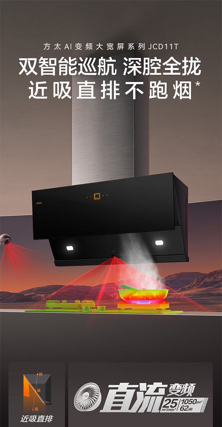 方太(FOTILE)JCD11T 侧吸油烟机 25巡航风量 红外温感智控智能 双智能巡航增压 油烟机吸油烟机 CXW-258-JCD11T/台
