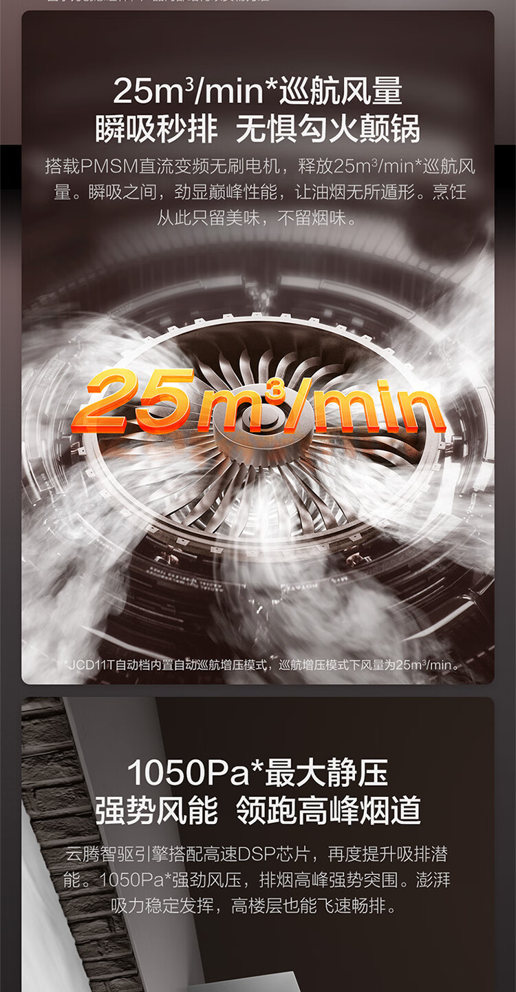 商品名称: 方太(FOTILE)JCD11T 侧吸油烟机 25巡航风量 红外温感智控智能 双智能巡航增压 油烟机吸油烟机 CXW-258-JCD11T/台