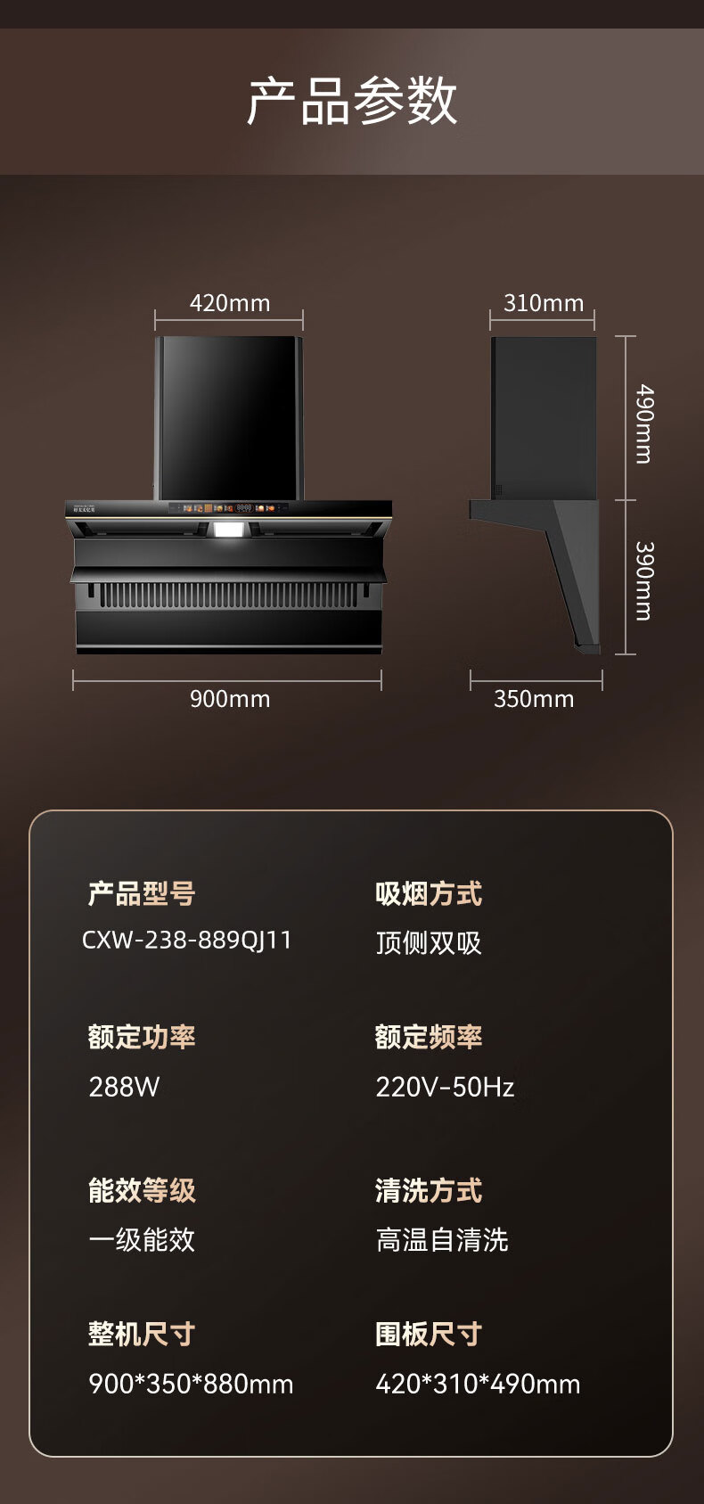 • 商品名称:好太太亿美油烟机家用大吸力顶侧双吸大风量厨房抽油烟机自动清洗7字型吸油烟机CXW-238-889QJ11 CXW-238-889QJ11/台