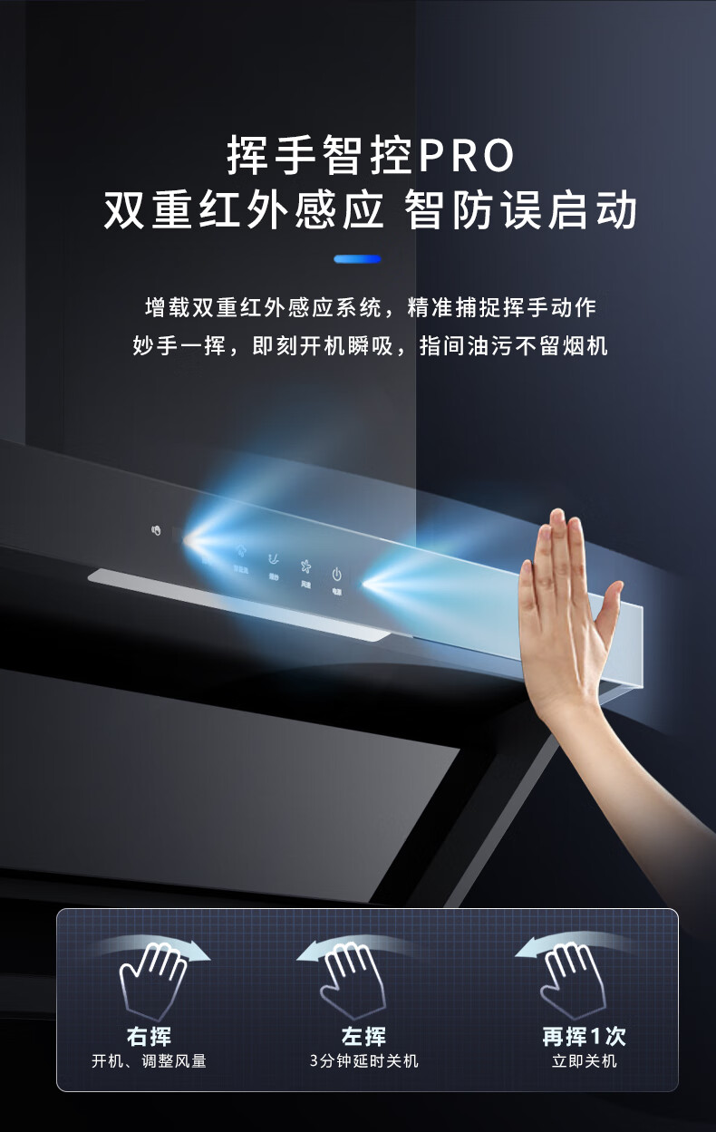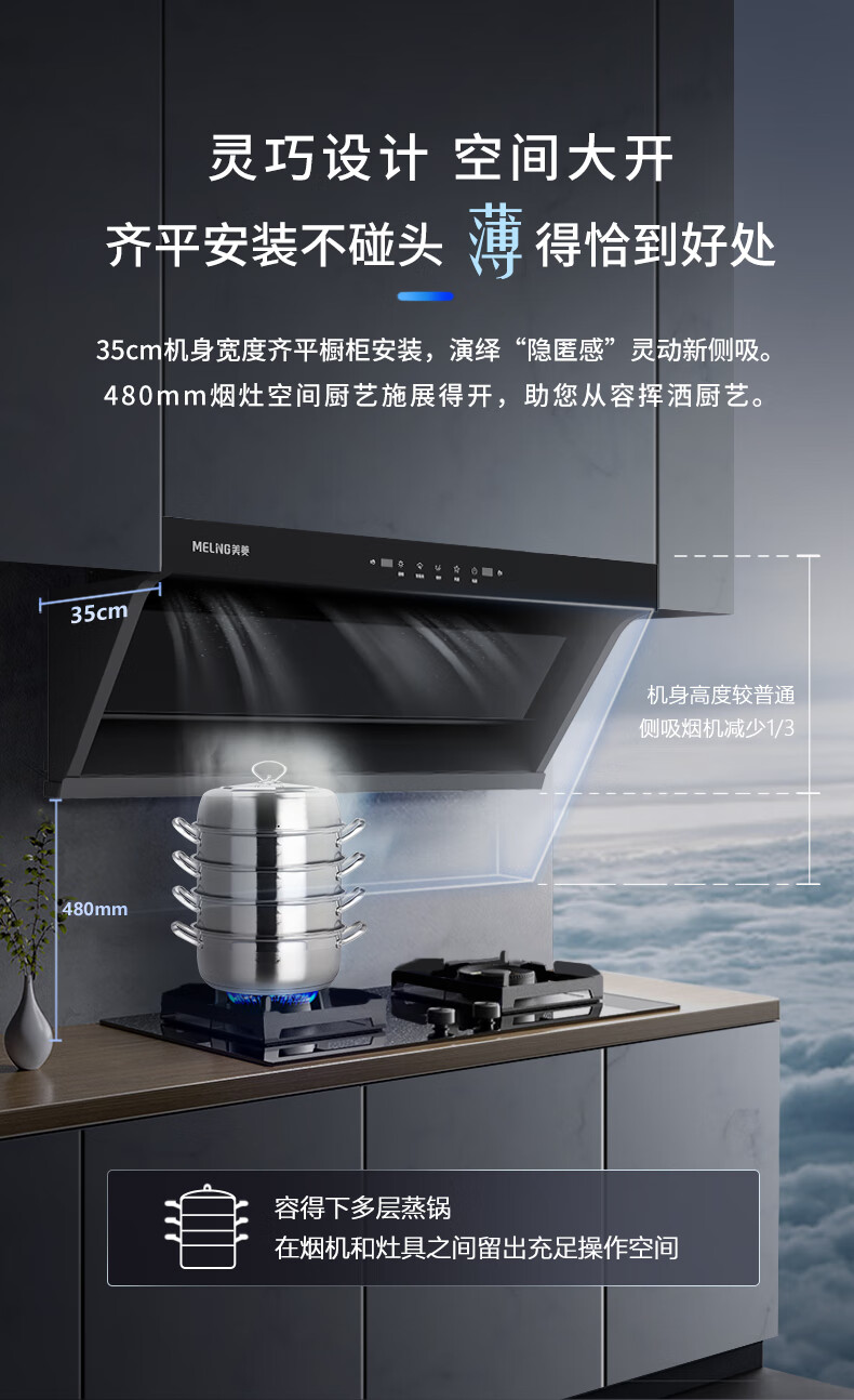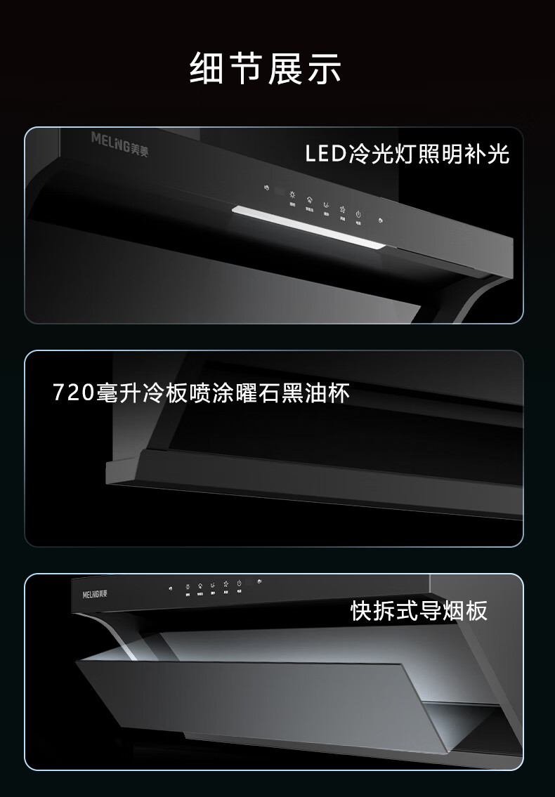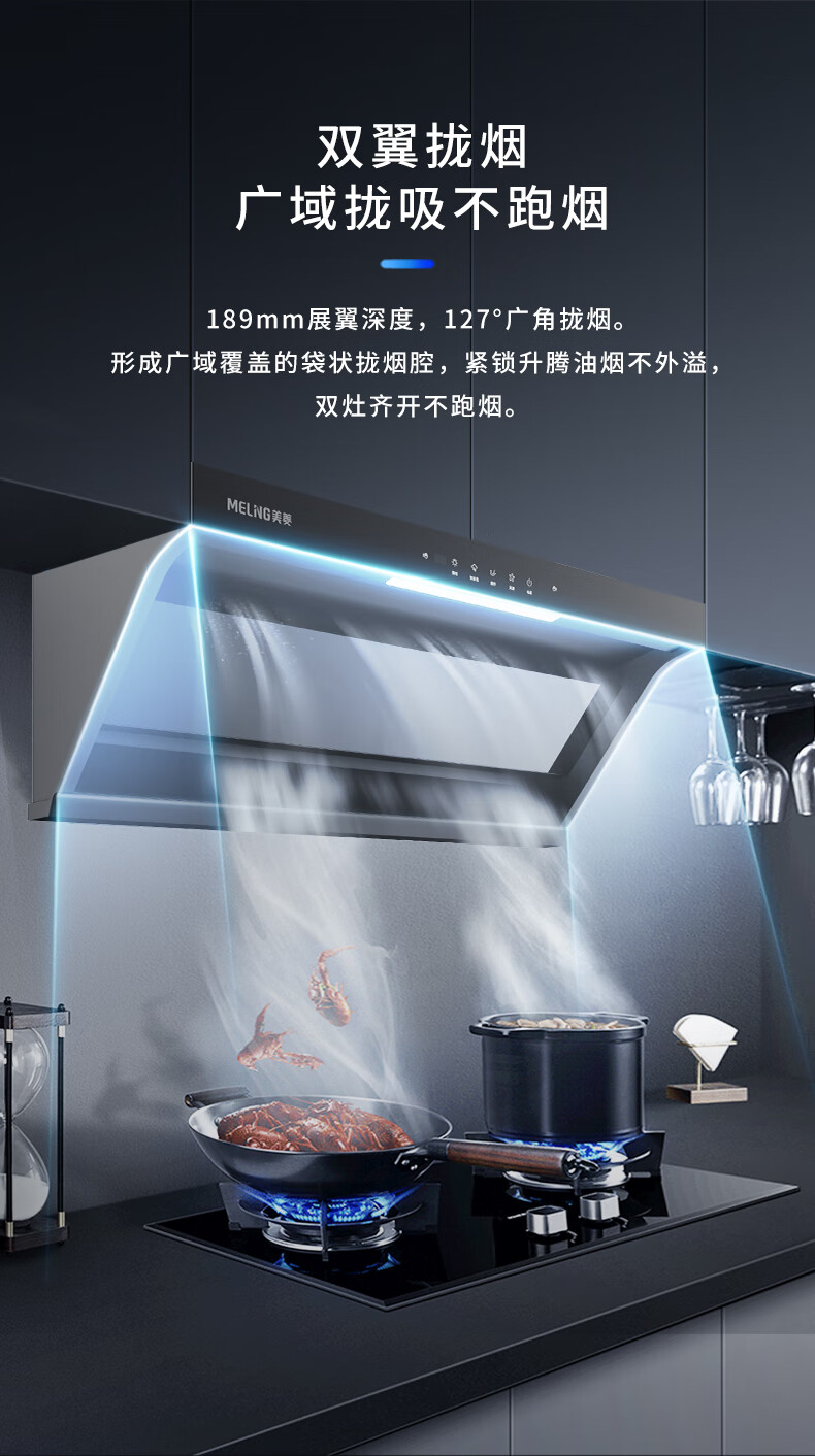 家用电器  > 厨卫大电  > 油烟机  >  美菱/MeLng  >  美菱28m³超大吸力 齐平橱柜安装 挥手智控 全封闭塑封电机 顶侧双吸油烟机MY-290Ls CXW-260-MY-290Ls/台