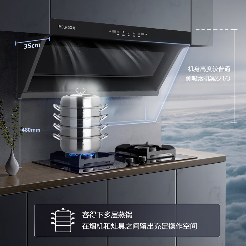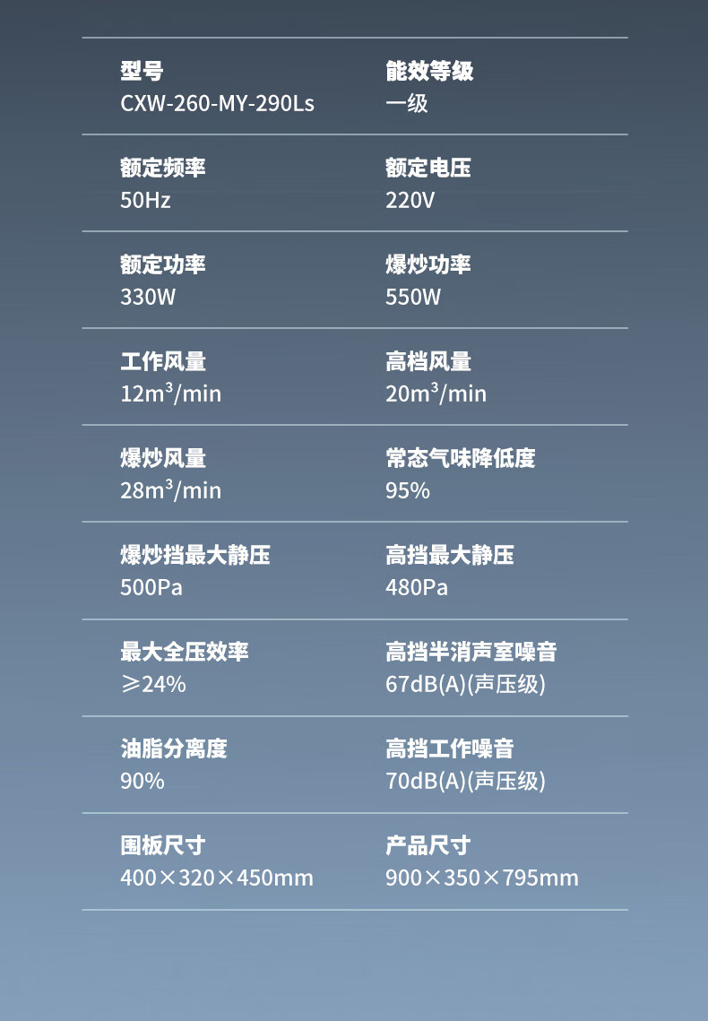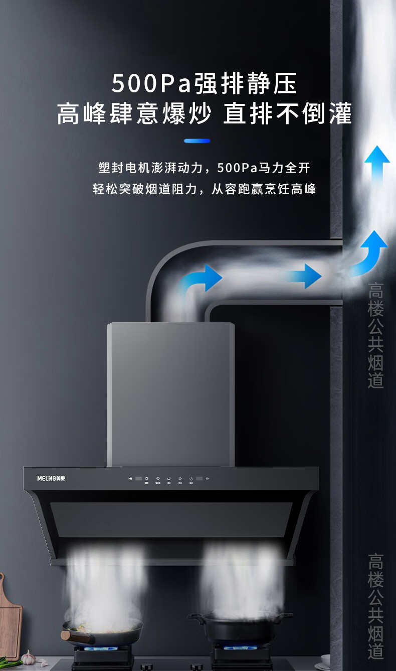 • 商品名称:美菱28m³超大吸力 齐平橱柜安装 挥手智控 全封闭塑封电机 顶侧双吸油烟机MY-290Ls CXW-260-MY-290Ls/台