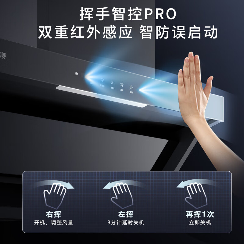 商品名称: 美菱28m³超大吸力 齐平橱柜安装 挥手智控 全封闭塑封电机 顶侧双吸油烟机MY-290Ls CXW-260-MY-290Ls/台