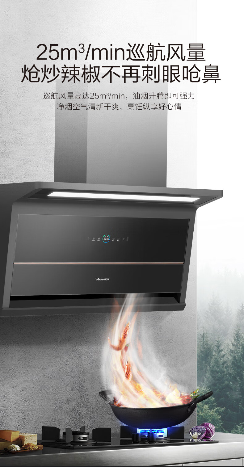 家用电器  > 厨卫大电  > 油烟机  >  万和/Vanward  >  万和【双吸力】L22Q 顶侧双吸油烟机 25立方飓风大吸力 挥手感应 自清洗 延时关机 CXW-240-L22Q/台