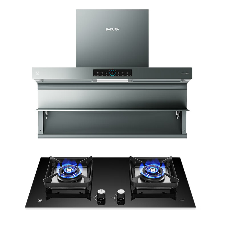 • 商品名称:樱花(SAKURA)烟灶套顶侧三腔多维拢烟25m³/min大风量变频增压5.0KW全铜火盖灶PQE02+JGC01天然气【套装商品】 CXW-210-PQE02/台