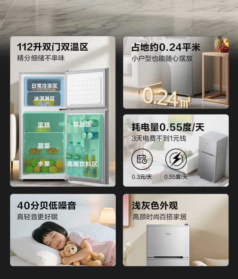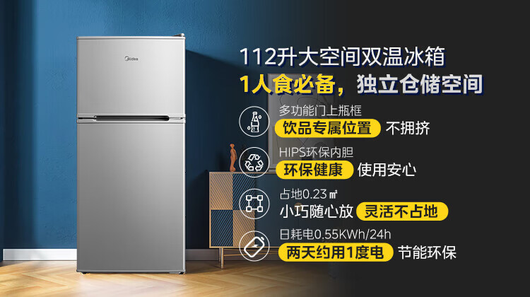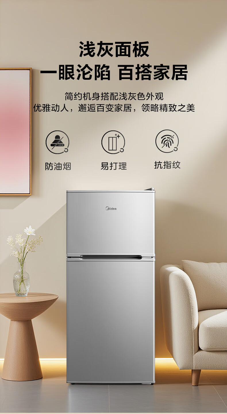 • 商品名称:美的(Midea)112L两门小冰箱灰色双温小冰箱迷你家用宿舍租房灵活摆放节能低音深冷速冻 BCD-112CM BCD-112CM/台