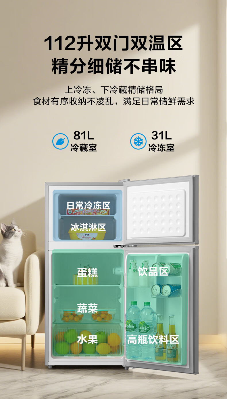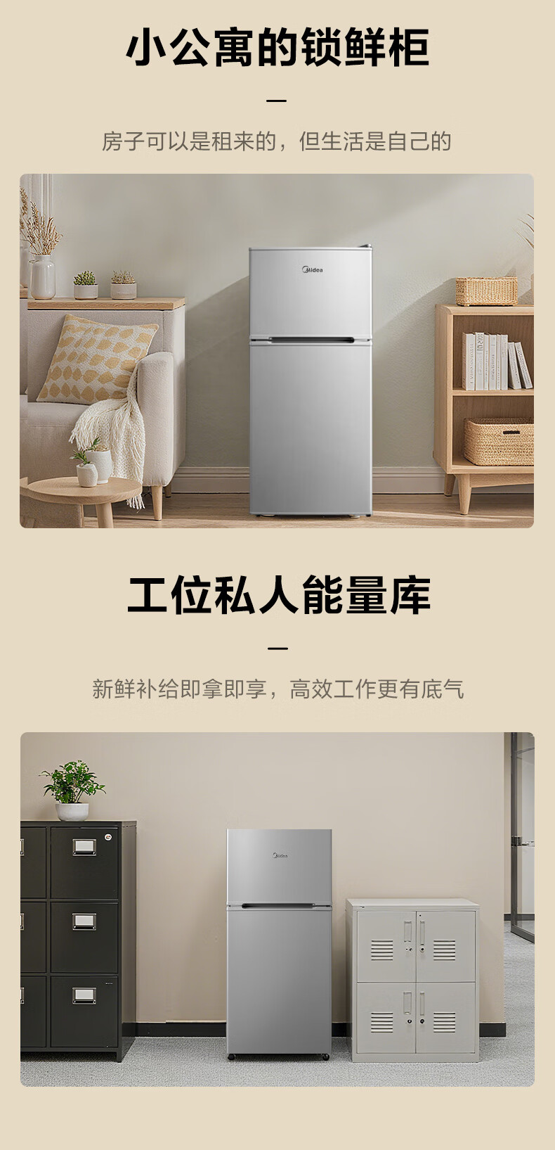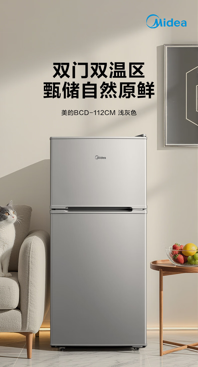 家用电器  > 大家电  > 冰箱  >  美的/MIDEA  >  美的(Midea)112L两门小冰箱灰色双温小冰箱迷你家用宿舍租房灵活摆放节能低音深冷速冻 BCD-112CM BCD-112CM/台