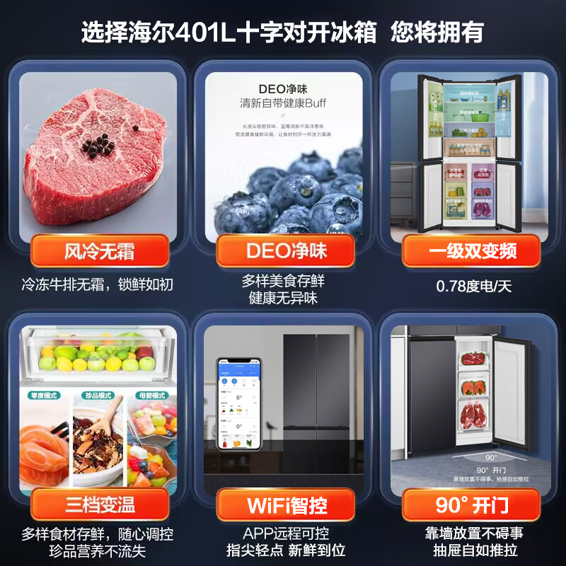 海尔401升变频风冷无霜十字双开对开四开多门小户型超薄 BCD-401WLHTDEDSDU1 BCD-401WLHTDEDSDU1/台