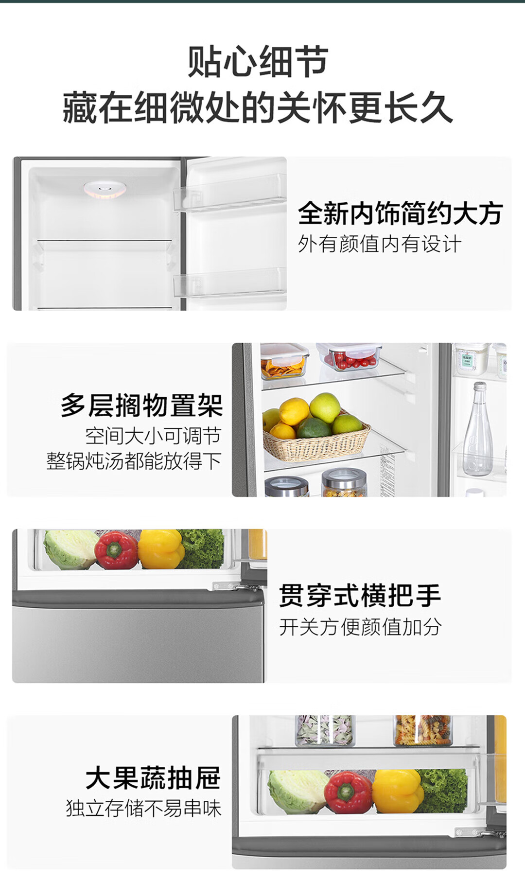 • 商品名称:海尔(Haier) BCD-180LLC2EZS9 海尔智家统帅180升节能省电低噪 两门 小户型 家用保鲜精致小巧电冰箱 BCD-180LLC2EZS9/台