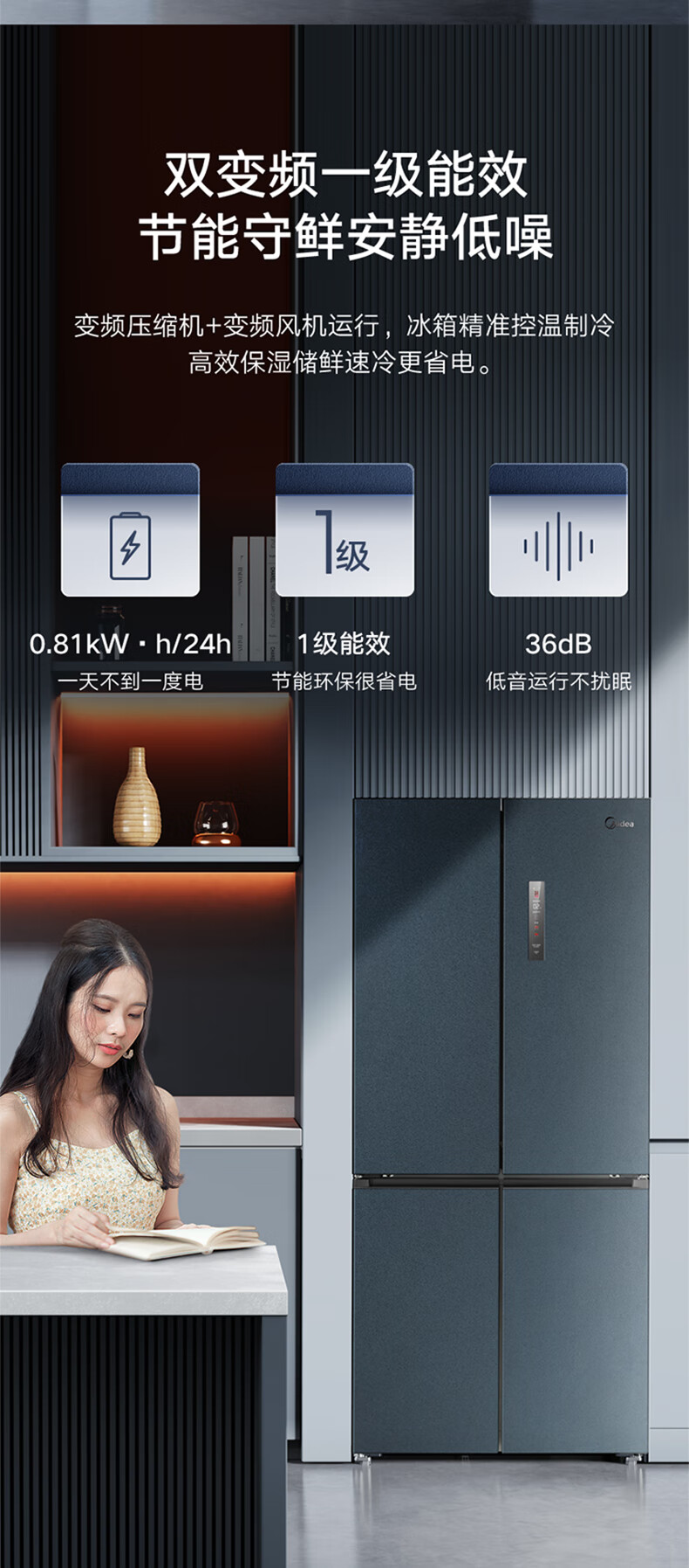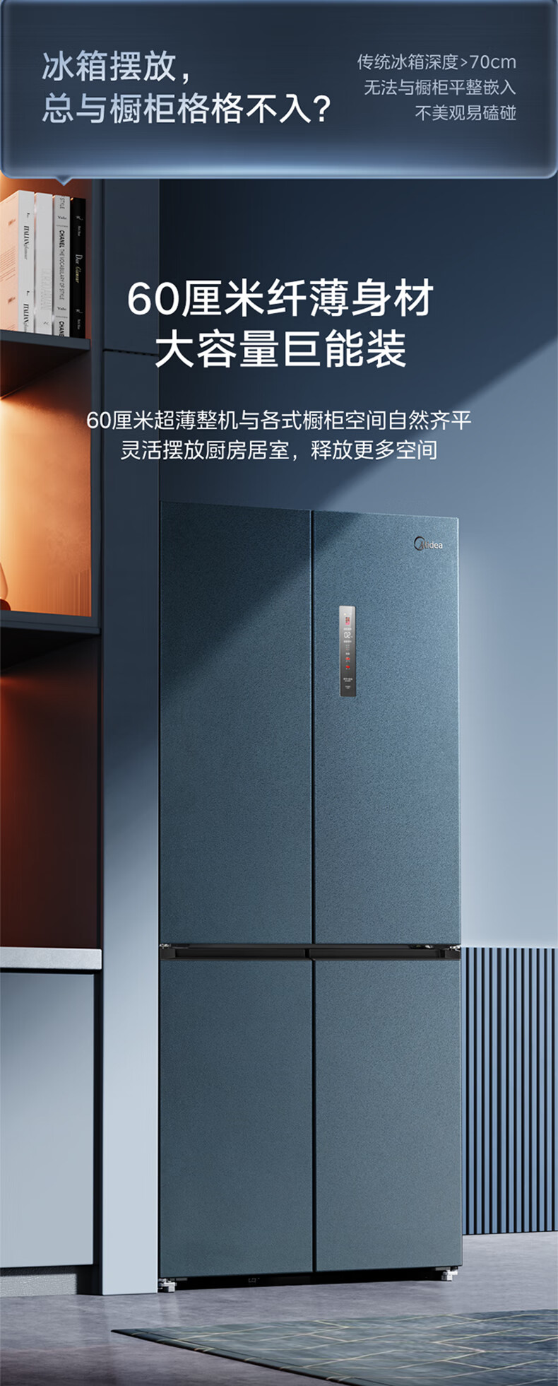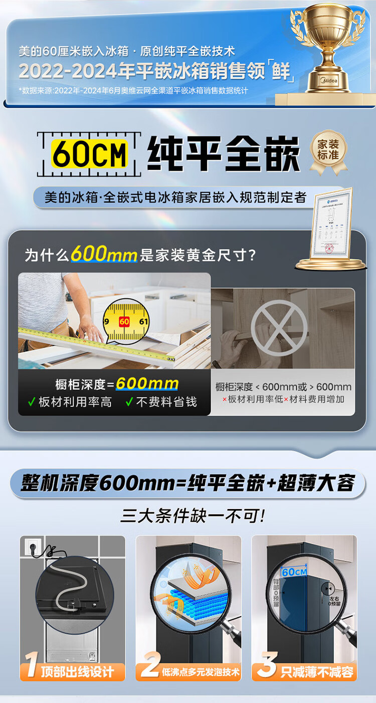 • 商品名称:美的(Midea)485L十字门冰箱60厘米纯平全嵌全空间养鲜一级能效风冷无霜底部散热BCD-485WSPZM(E) BCD-485WSPZM(E)/台