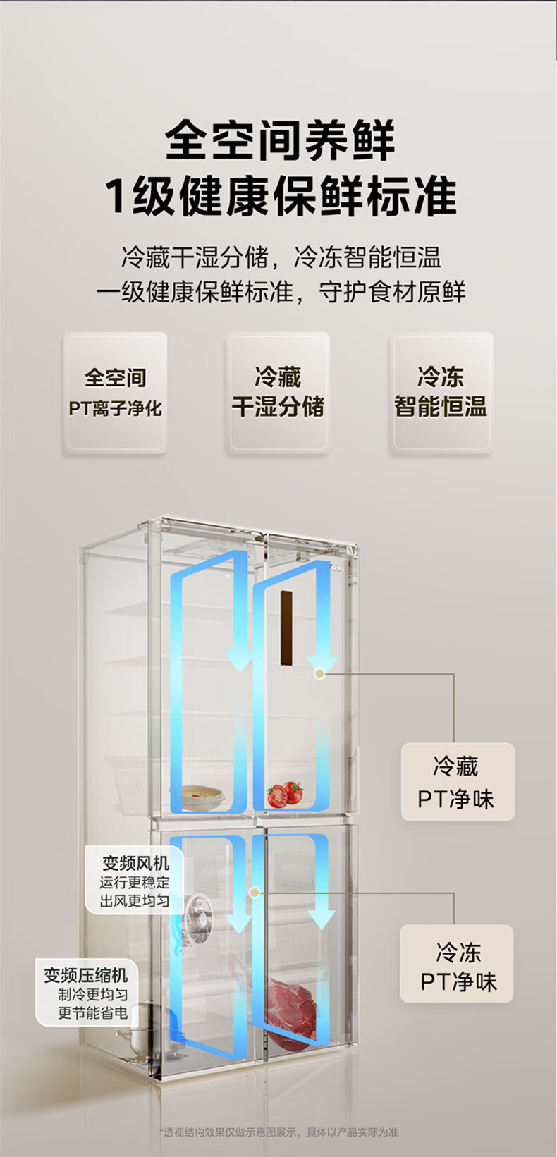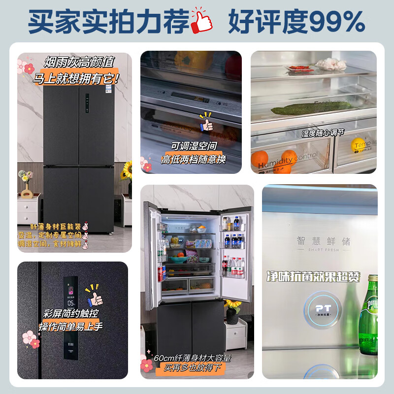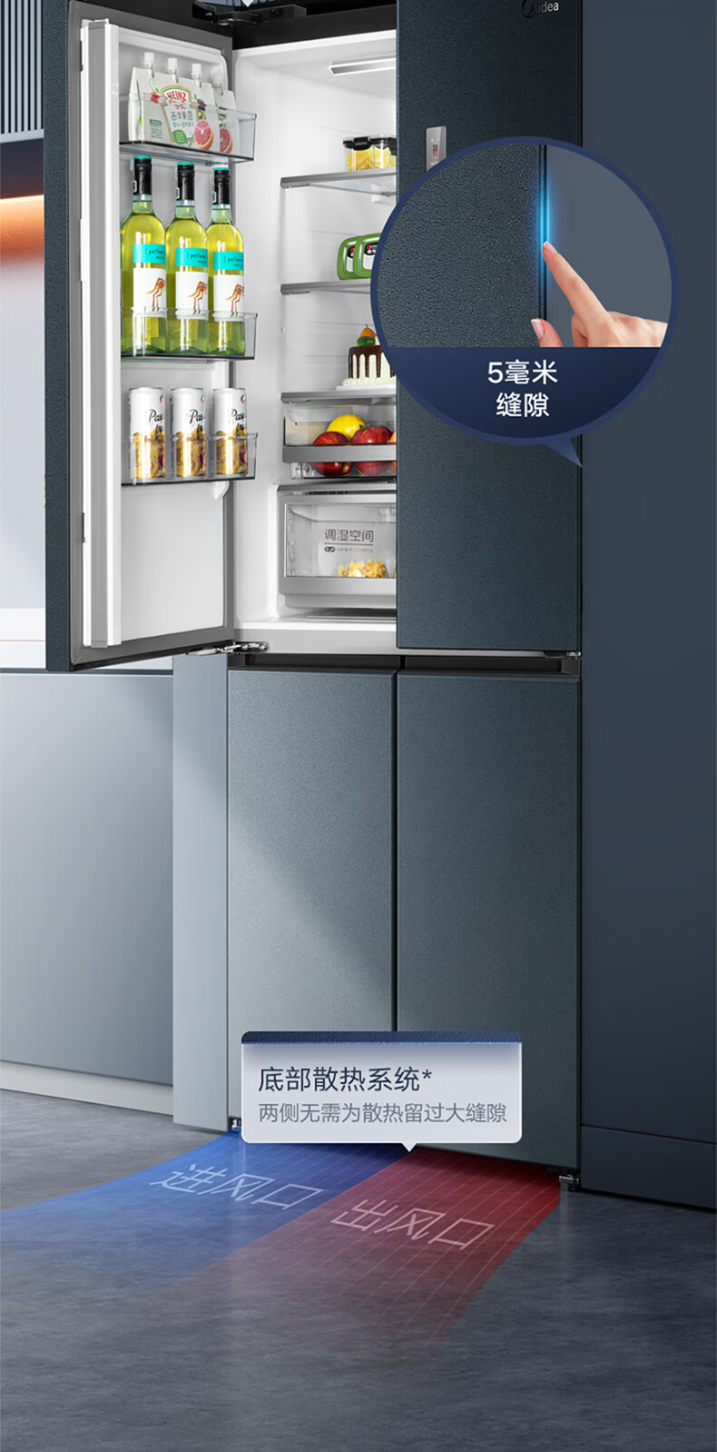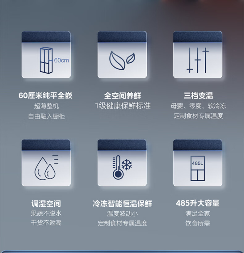商品名称: 美的(Midea)485L十字门冰箱60厘米纯平全嵌全空间养鲜一级能效风冷无霜底部散热BCD-485WSPZM(E) BCD-485WSPZM(E)/台