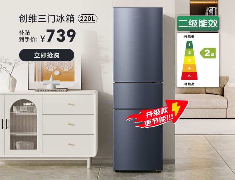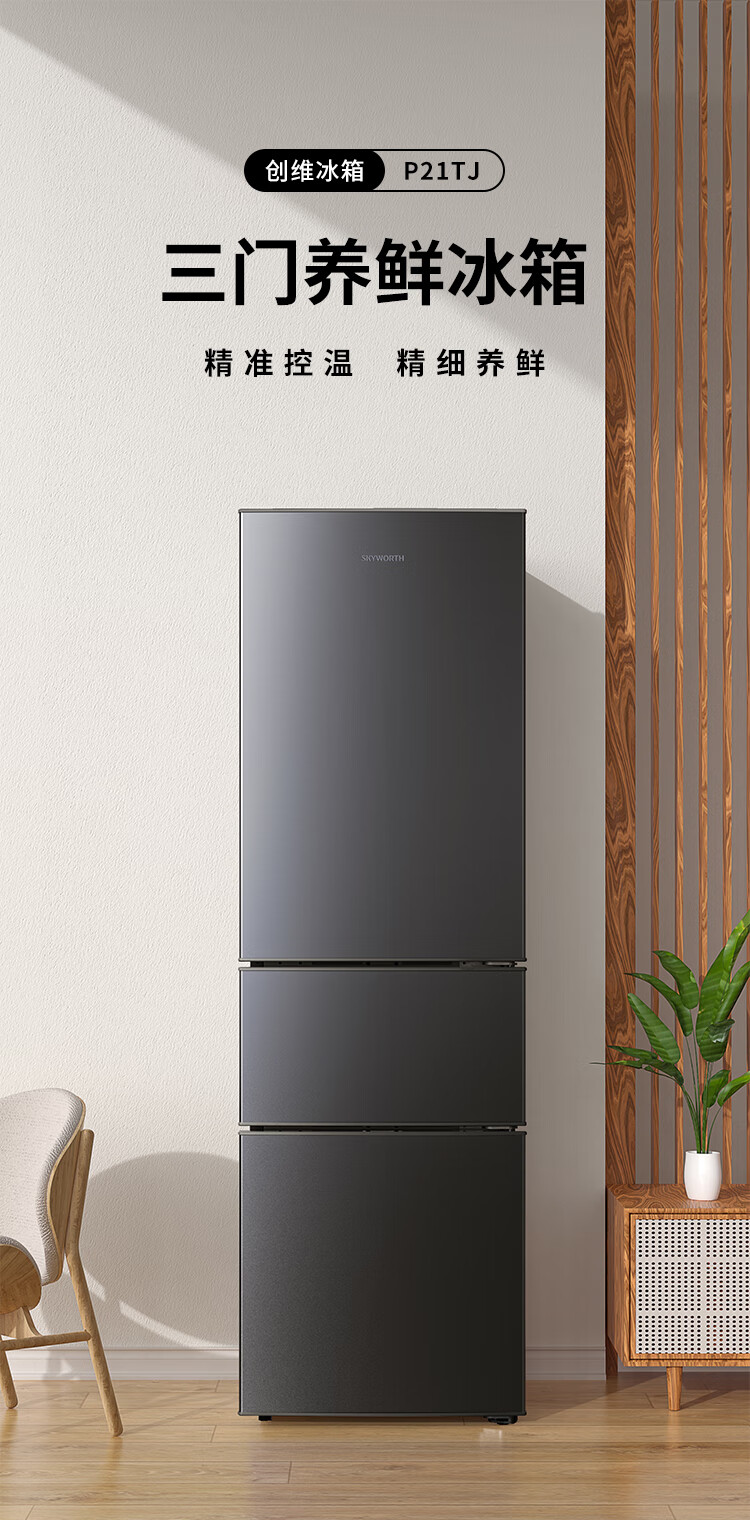 • 商品名称:创维 (SKYWORTH)210升小冰箱 三门家用小型电冰箱 三门三温区中门软冷冻 保鲜省电低音P21TJ P21TJ/台