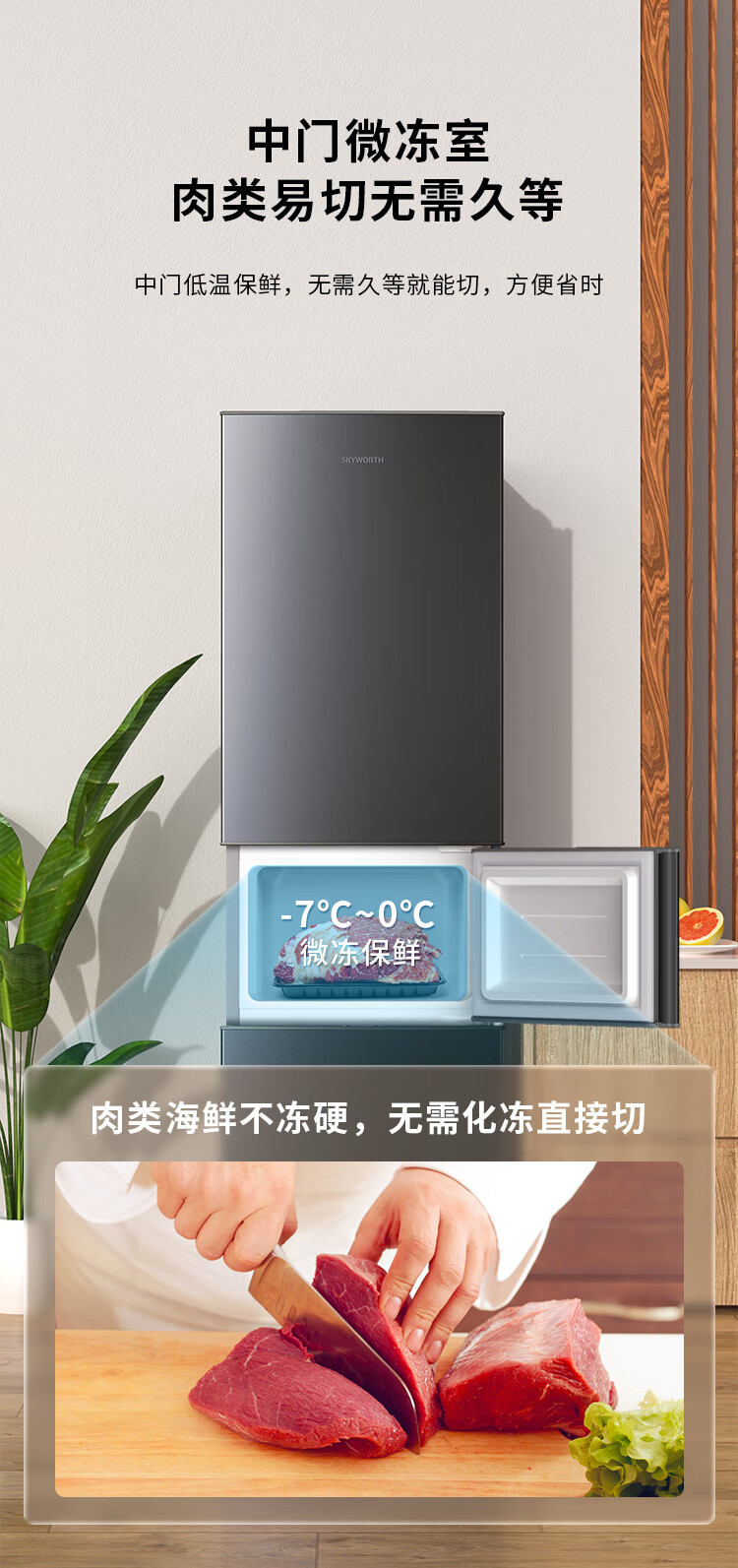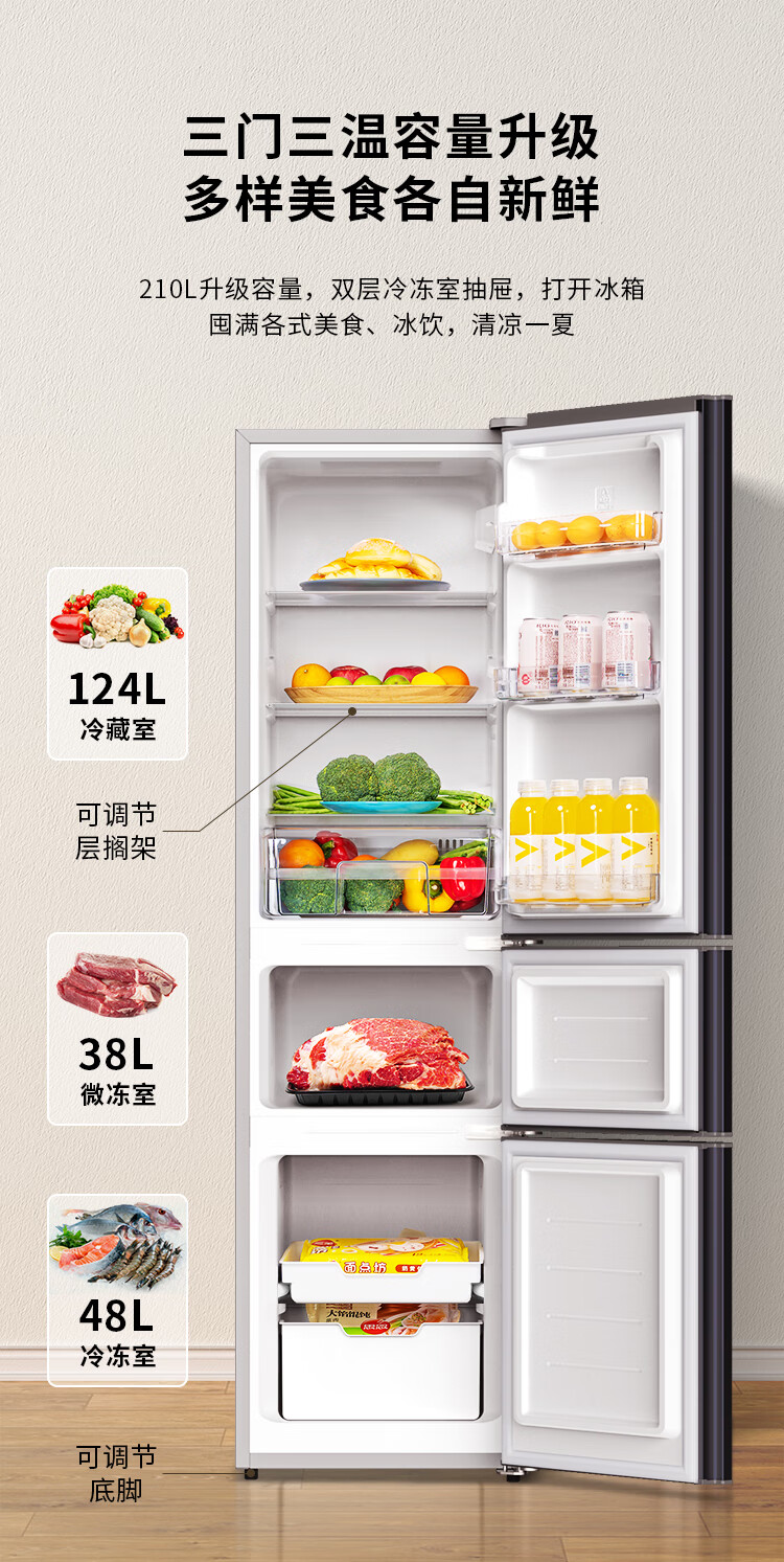 家用电器  > 大家电  > 冰箱  >  创维/Skyworth  >  创维 (SKYWORTH)210升小冰箱 三门家用小型电冰箱 三门三温区中门软冷冻 保鲜省电低音P21TJ P21TJ/台