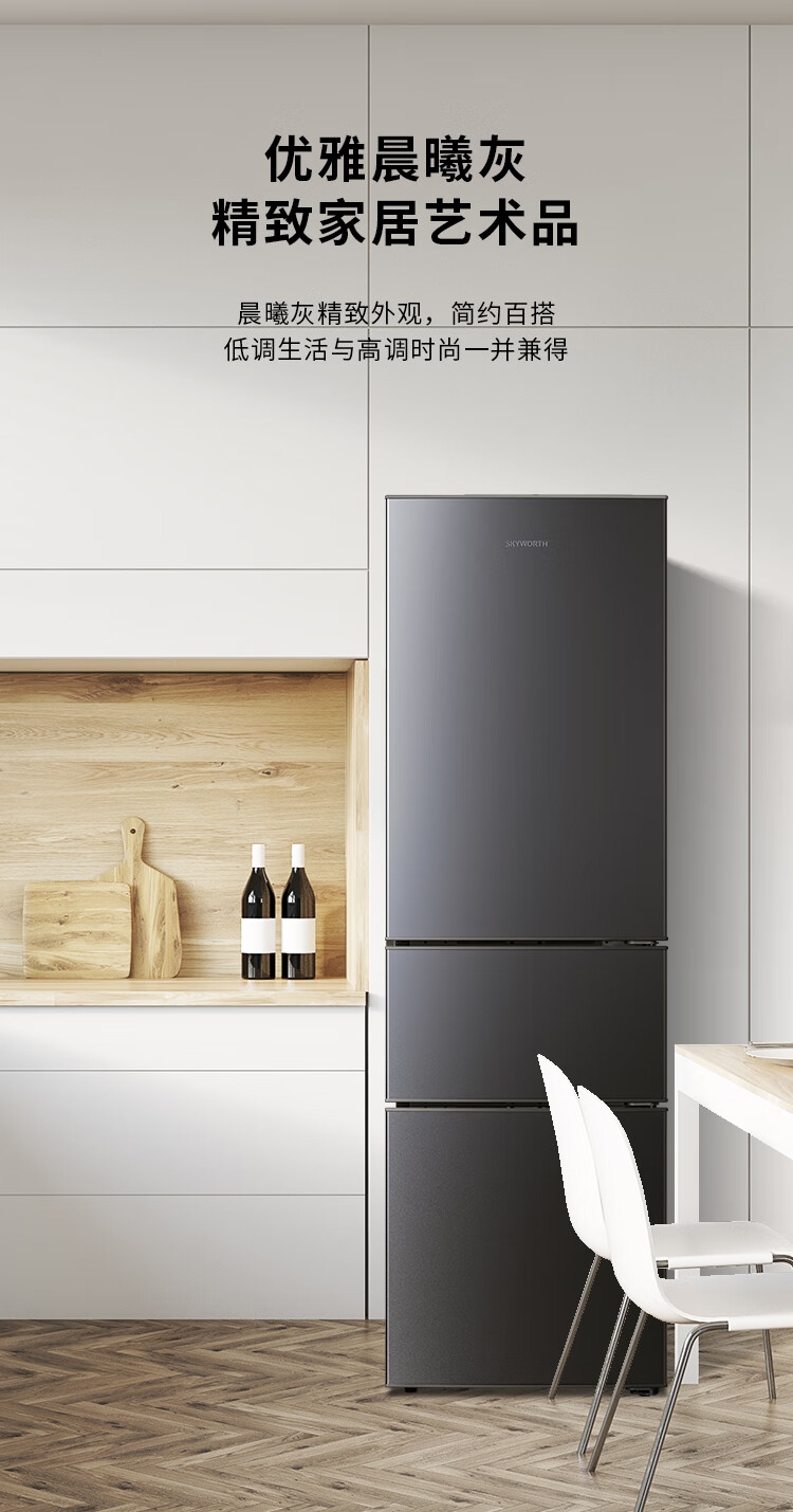 创维 (SKYWORTH)210升小冰箱 三门家用小型电冰箱 三门三温区中门软冷冻 保鲜省电低音P21TJ P21TJ/台