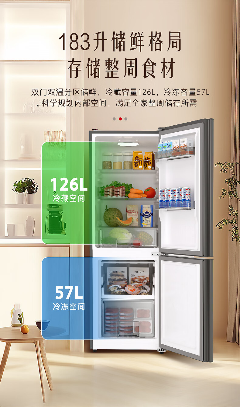• 商品名称:澳柯玛(AUCMA)183升双门小型家用电冰箱家用租房用双开门小冰箱二门冰箱节能低噪 BCD-183HCDNE BCD-183HCDNE/台