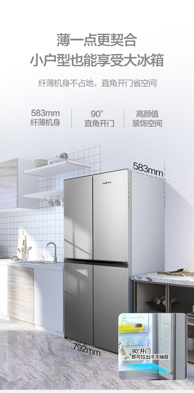 新飞 (Frestec)382L十字门精细储鲜均匀制冷健康材质一体照明冰箱BCD-382LT8EH BCD-382LT8EH/台