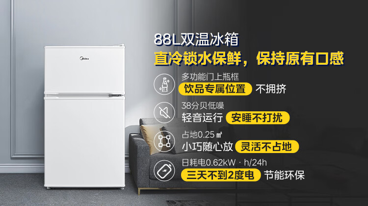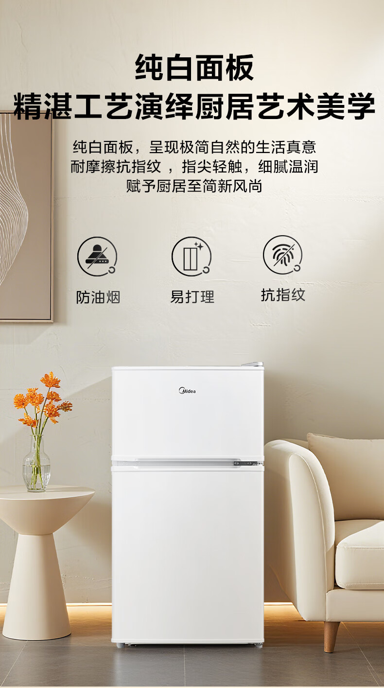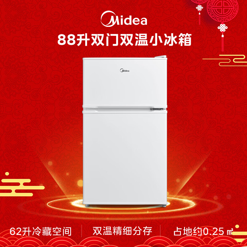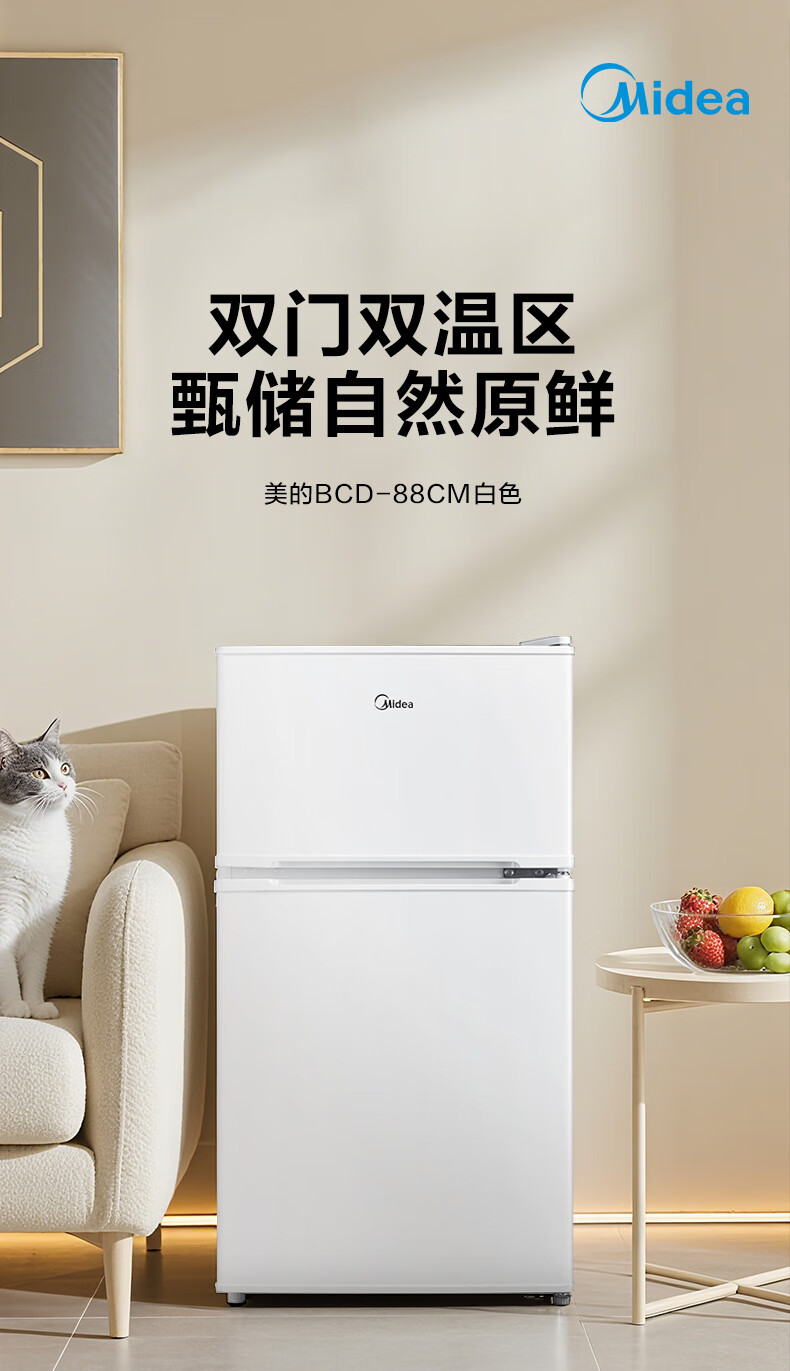 美的(Midea)88L两门小冰箱白色迷你冰箱租房宿舍办公室小型家用双温可冷冻冷藏节能BCD-88CM BCD-88CM/台