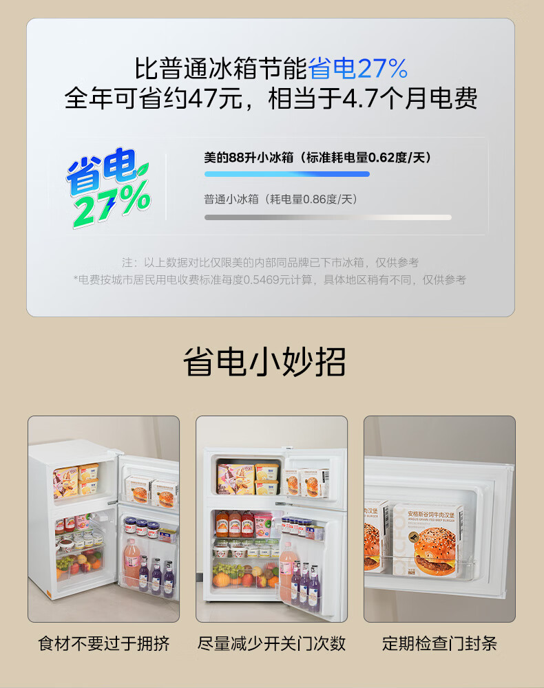 家用电器  > 大家电  > 冰箱  >  美的/MIDEA  >  美的(Midea)88L两门小冰箱白色迷你冰箱租房宿舍办公室小型家用双温可冷冻冷藏节能BCD-88CM BCD-88CM/台