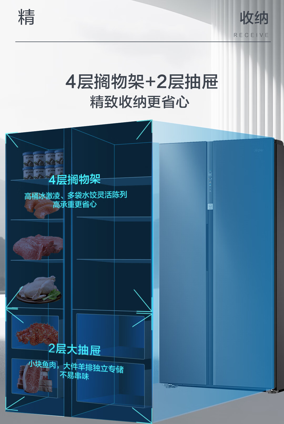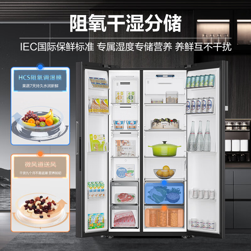 海尔(Haier)盛宴630L对开门冰箱干湿分储一级能效风冷变频超大容量灰色BCD-630WGHSS95SMU1 BCD-630WGHSS95SMU1/台