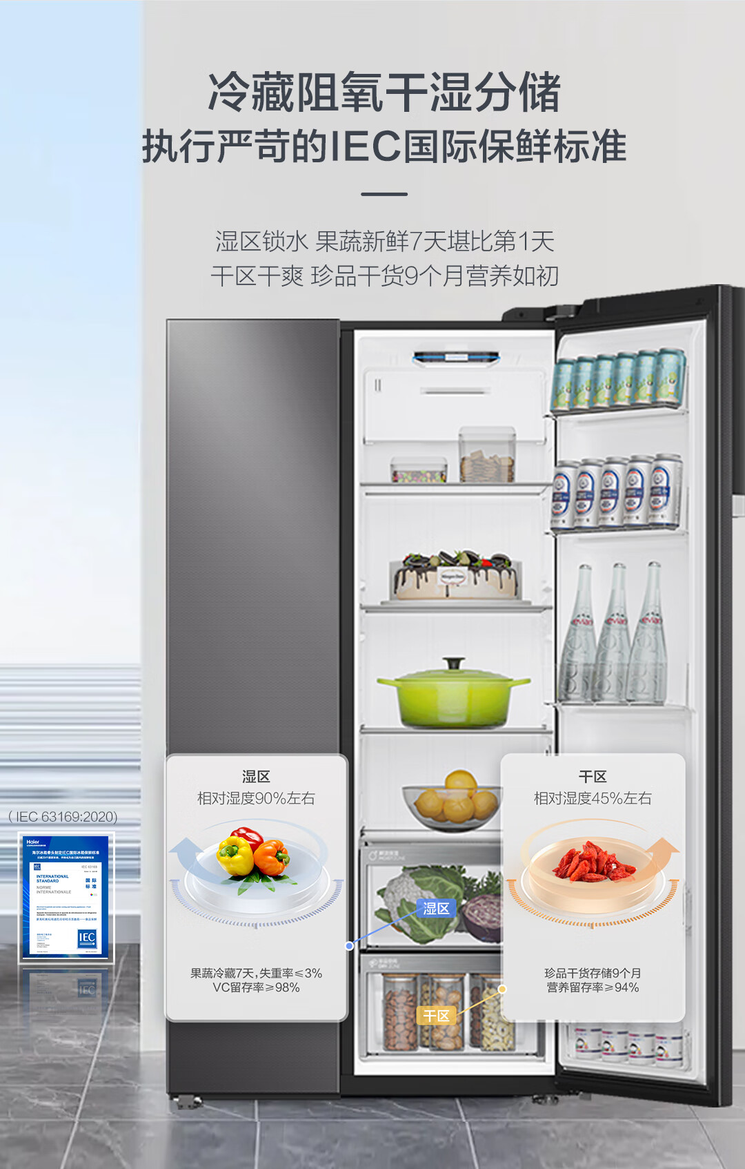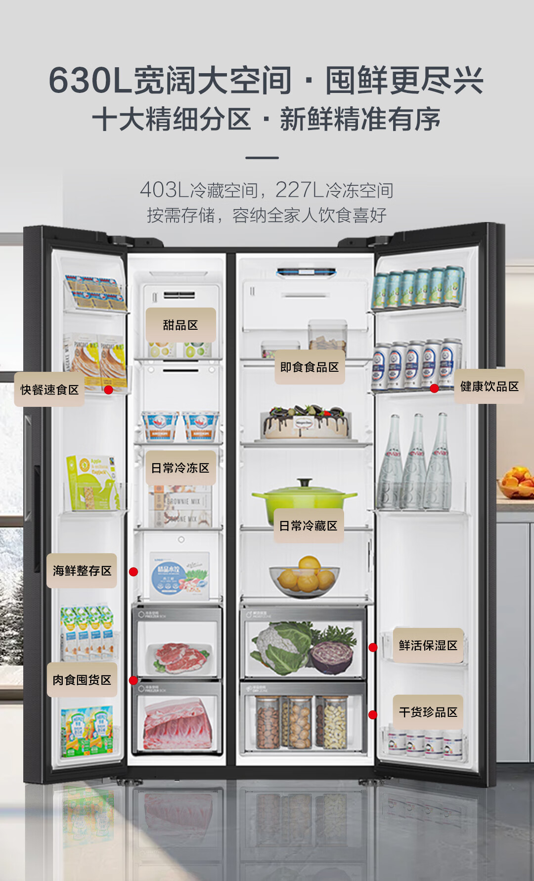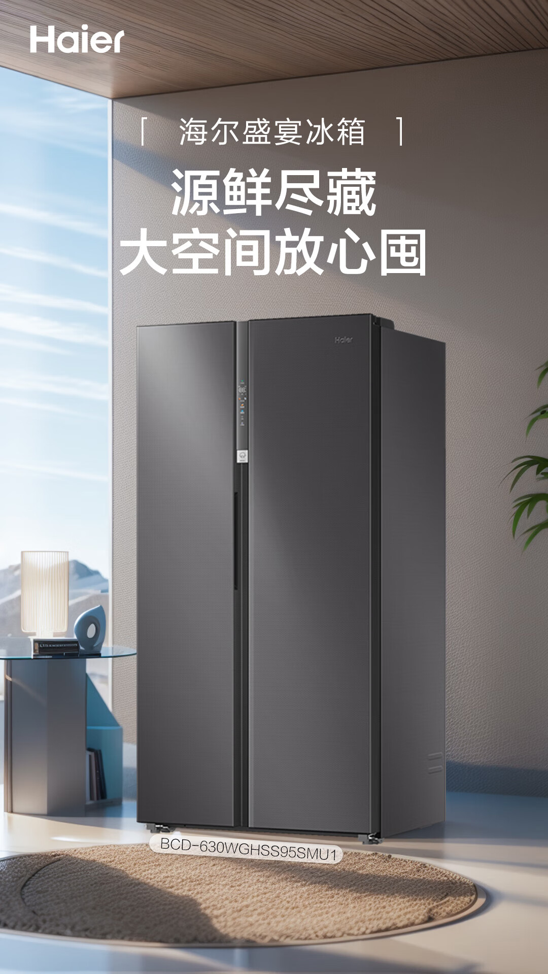家用电器  > 大家电  > 冰箱  >  海尔/Haier  >  海尔(Haier)盛宴630L对开门冰箱干湿分储一级能效风冷变频超大容量灰色BCD-630WGHSS95SMU1 BCD-630WGHSS95SMU1/台