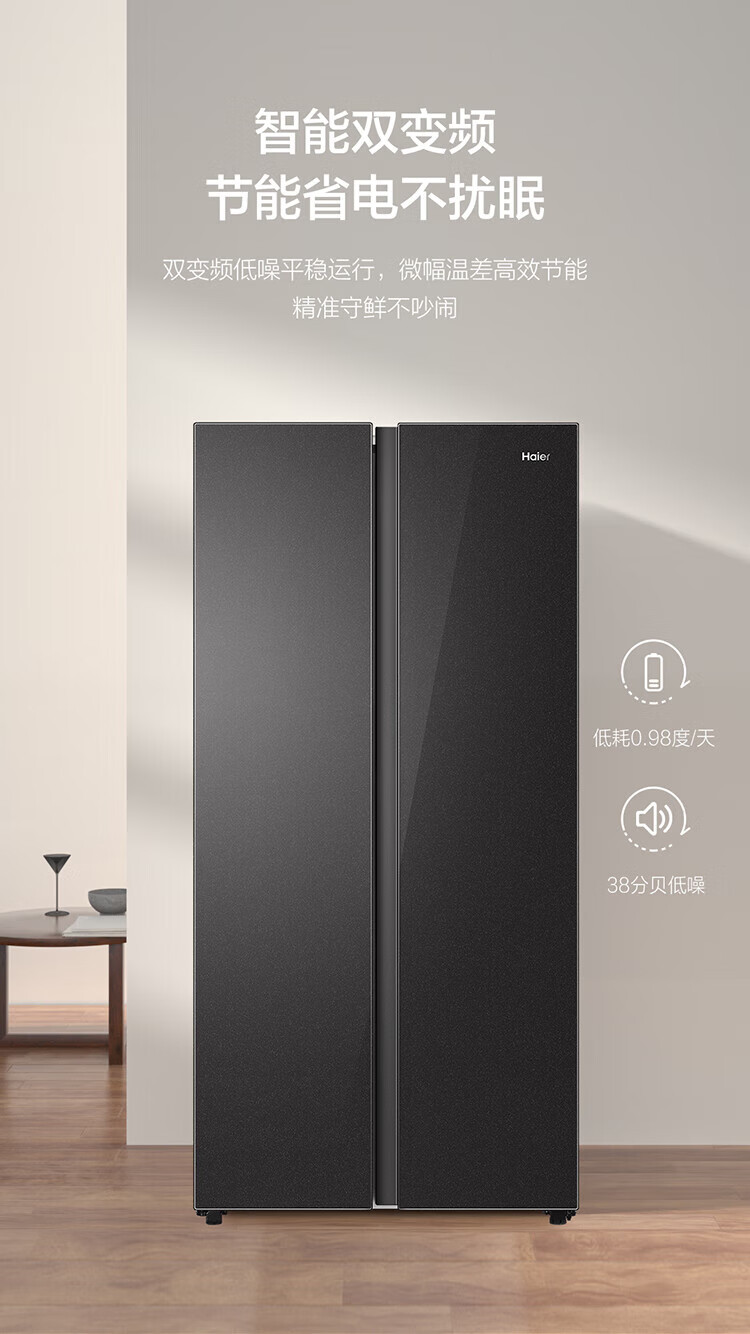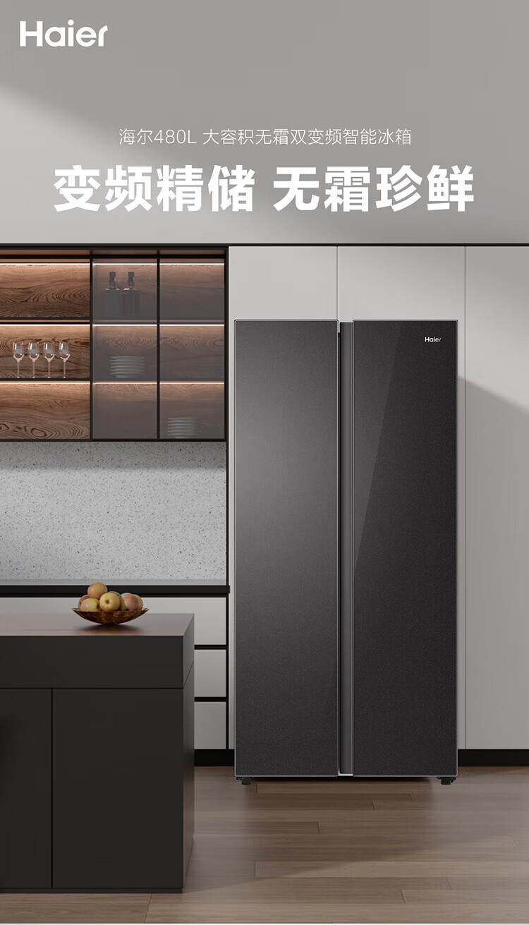 海尔(Haier)480升对开门风冷无霜彩晶变频大容量超薄家用电冰箱BCD-480WGHSSEDSLU1 BCD-480WGHSSEDSLU1/台
