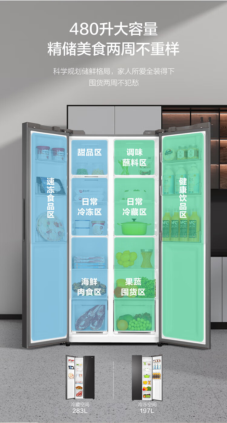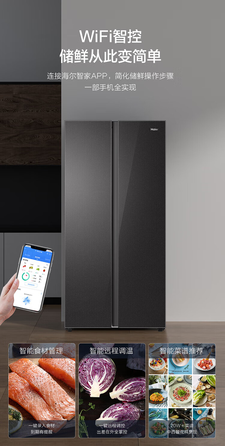 家用电器  > 大家电  > 冰箱  >  海尔/Haier  >  海尔(Haier)480升对开门风冷无霜彩晶变频大容量超薄家用电冰箱BCD-480WGHSSEDSLU1 BCD-480WGHSSEDSLU1/台