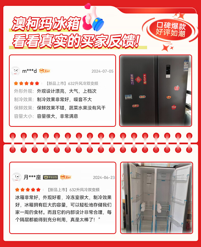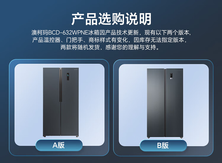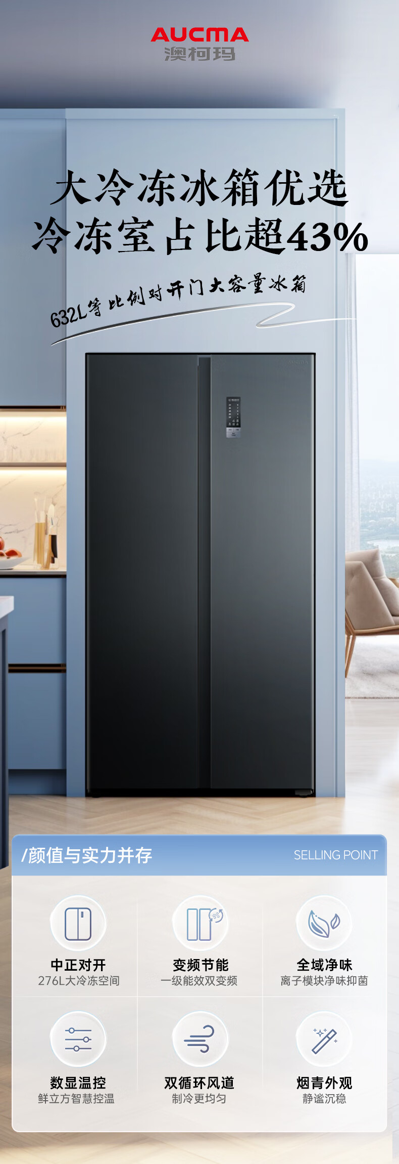 家用电器  > 大家电  > 冰箱  >  澳柯玛/AUCMA  >  澳柯玛(AUCMA)632升双开门对开门家用大容量囤货电冰箱风冷无霜一级能效双变频节能低噪BCD-632WPNE BCD-632WPNE/台