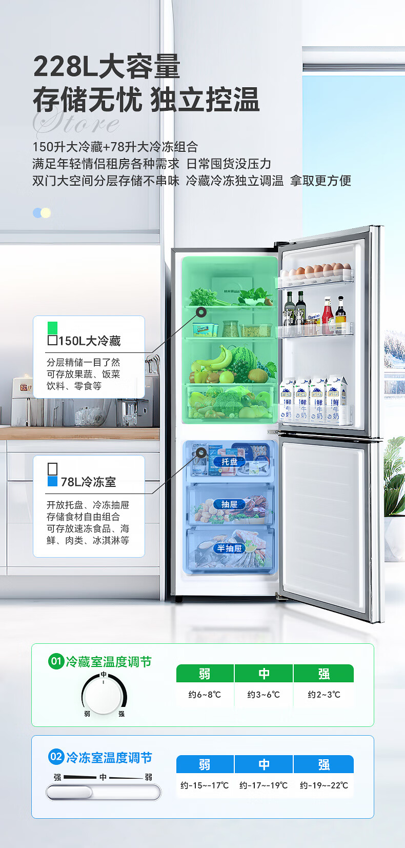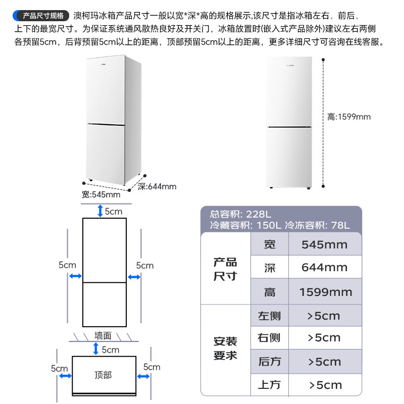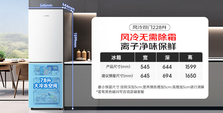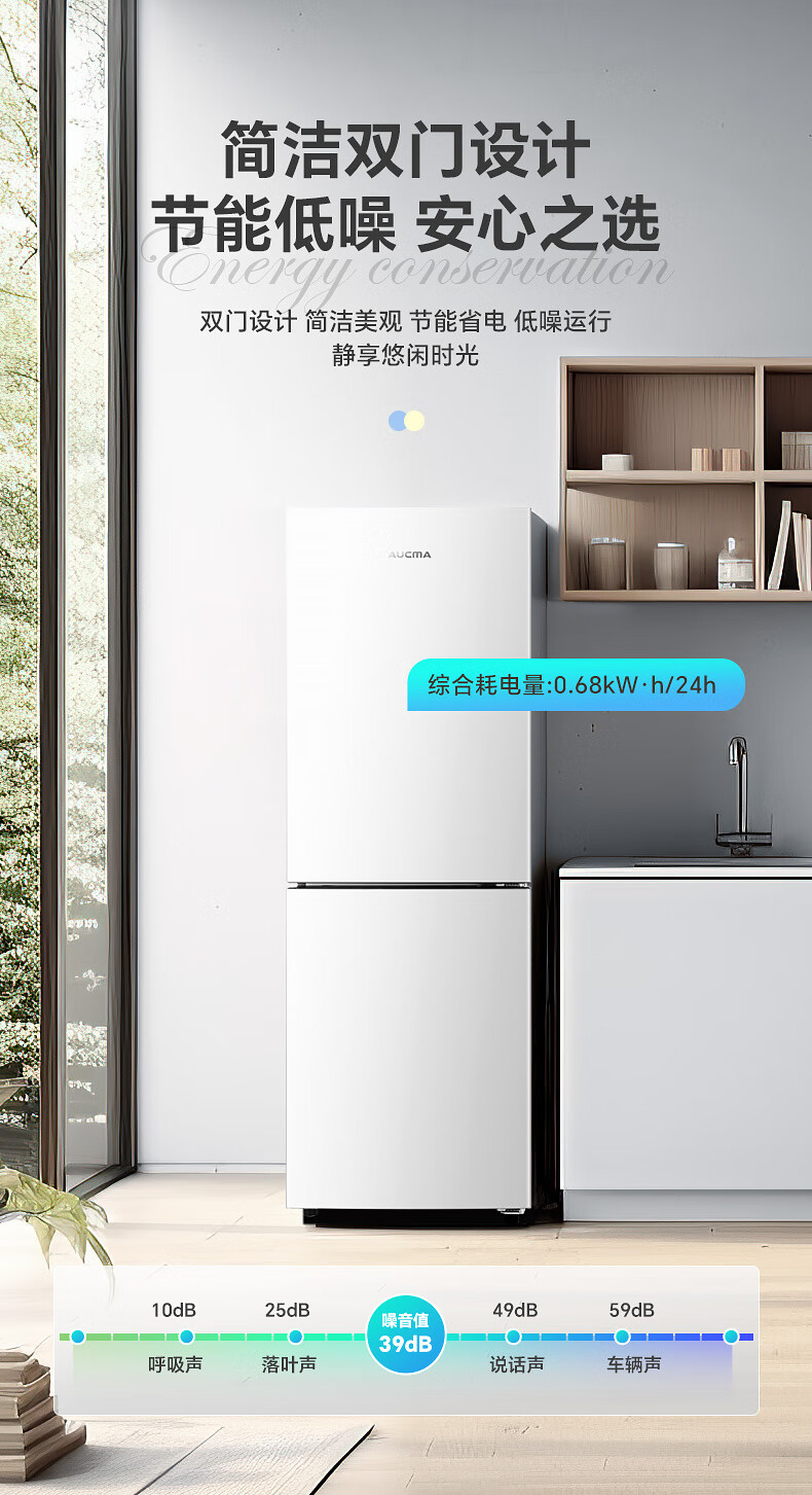• 商品名称:澳柯玛(AUCMA)228升两门二门双开门小型家用宿舍出租房小户型电冰箱风冷无霜节能省电BCD-228WH BCD-228WH/台