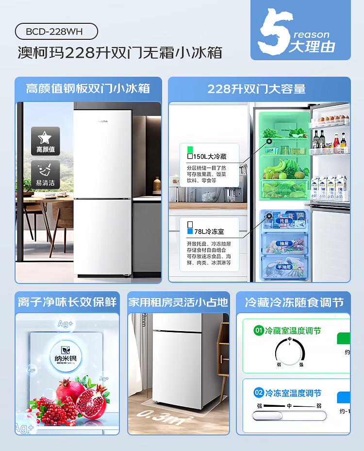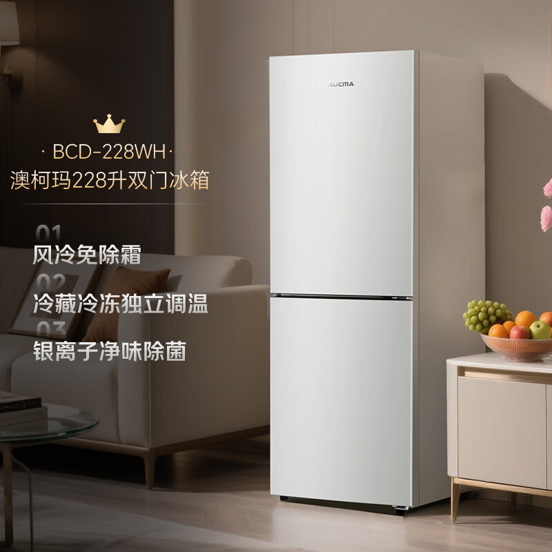 家用电器  > 大家电  > 冰箱  >  澳柯玛/AUCMA  >  澳柯玛(AUCMA)228升两门二门双开门小型家用宿舍出租房小户型电冰箱风冷无霜节能省电BCD-228WH BCD-228WH/台