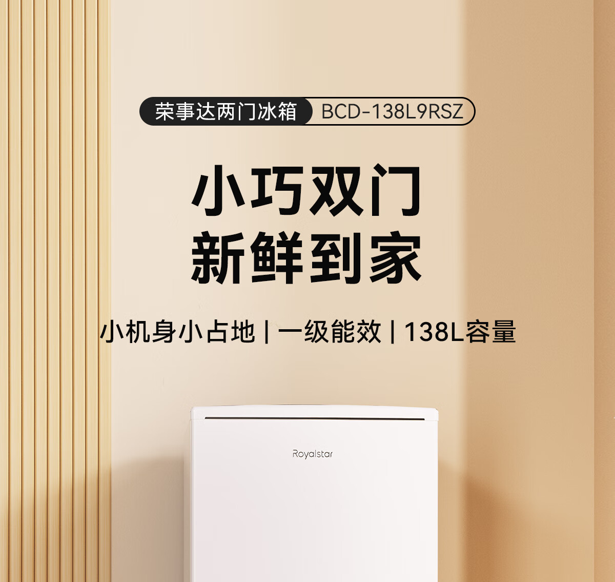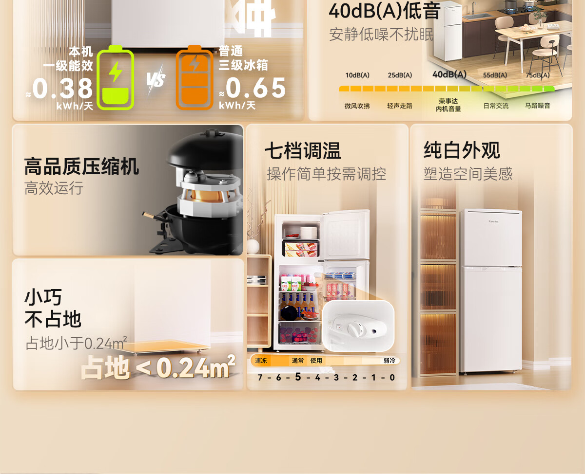 荣事达(Royalstar)138升小冰箱小型家用出租房办公室宿舍双开门两门双门二门电冰箱节能省电低音BCD-138L9RSZ BCD-138L9RSZ/台