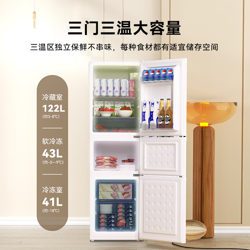 荣事达(Royalstar)206升三门小型租房家用电冰箱三开门三温区中门软冷冻 节能省电低音 两天仅约一度电BCD-206T9RSZ BCD-206T9RSZ/台