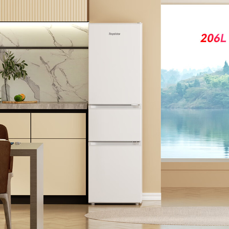 • 商品名称:荣事达(Royalstar)206升三门小型租房家用电冰箱三开门三温区中门软冷冻 节能省电低音 两天仅约一度电BCD-206T9RSZ BCD-206T9RSZ/台