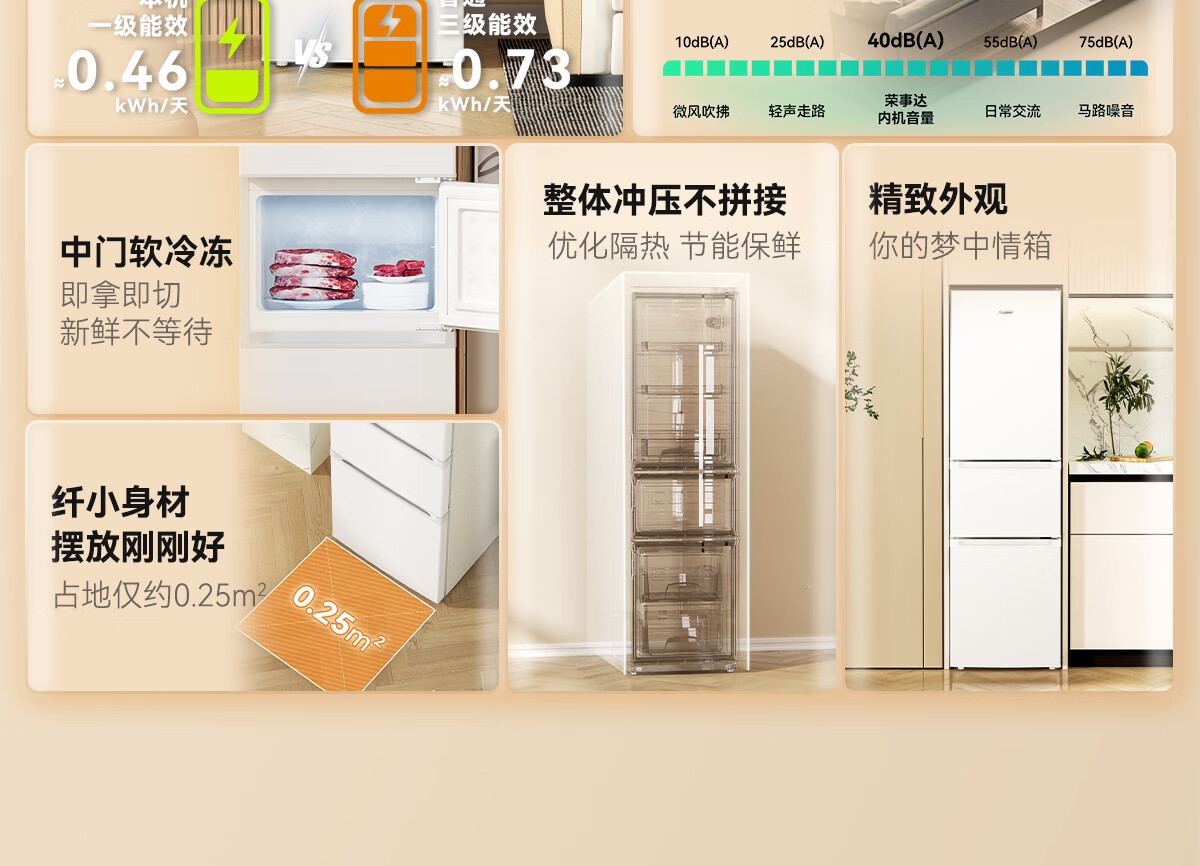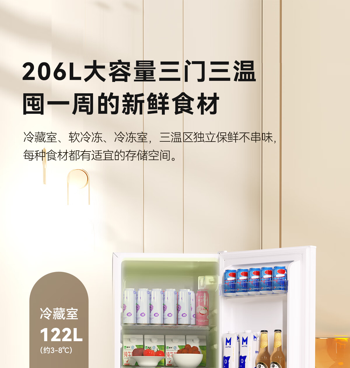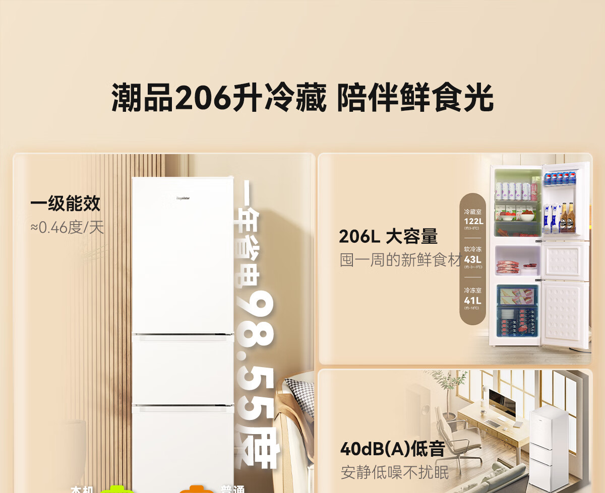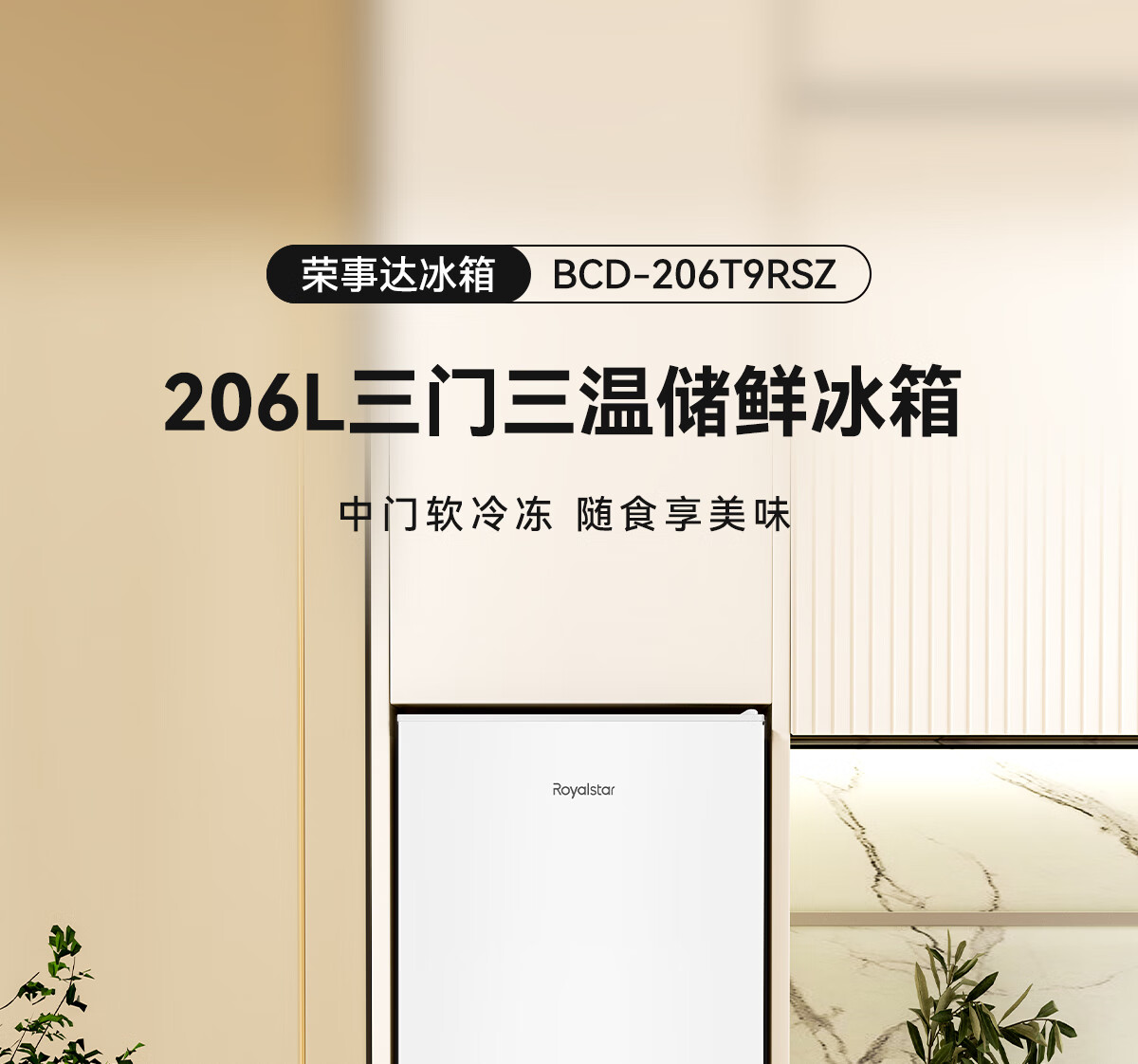 家用电器  > 大家电  > 冰箱  >  荣事达/Royalstar  >  荣事达(Royalstar)206升三门小型租房家用电冰箱三开门三温区中门软冷冻 节能省电低音 两天仅约一度电BCD-206T9RSZ BCD-206T9RSZ/台