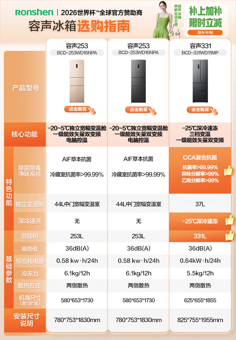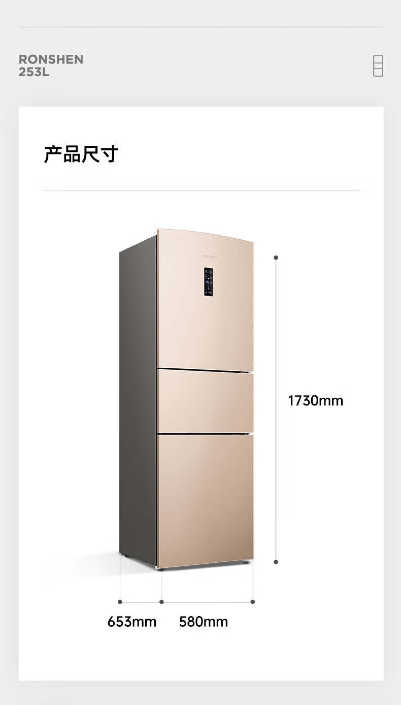家用电器  > 大家电  > 冰箱  >  容声/Ronshen  >  容声253L三开门小冰箱小户型超薄一级能效风冷无霜变频节能家用璀璨金BCD-253WD16NPA BCD-253WD16NPA/台