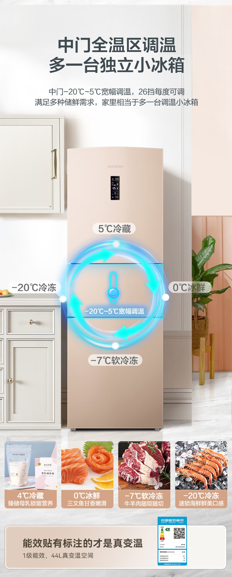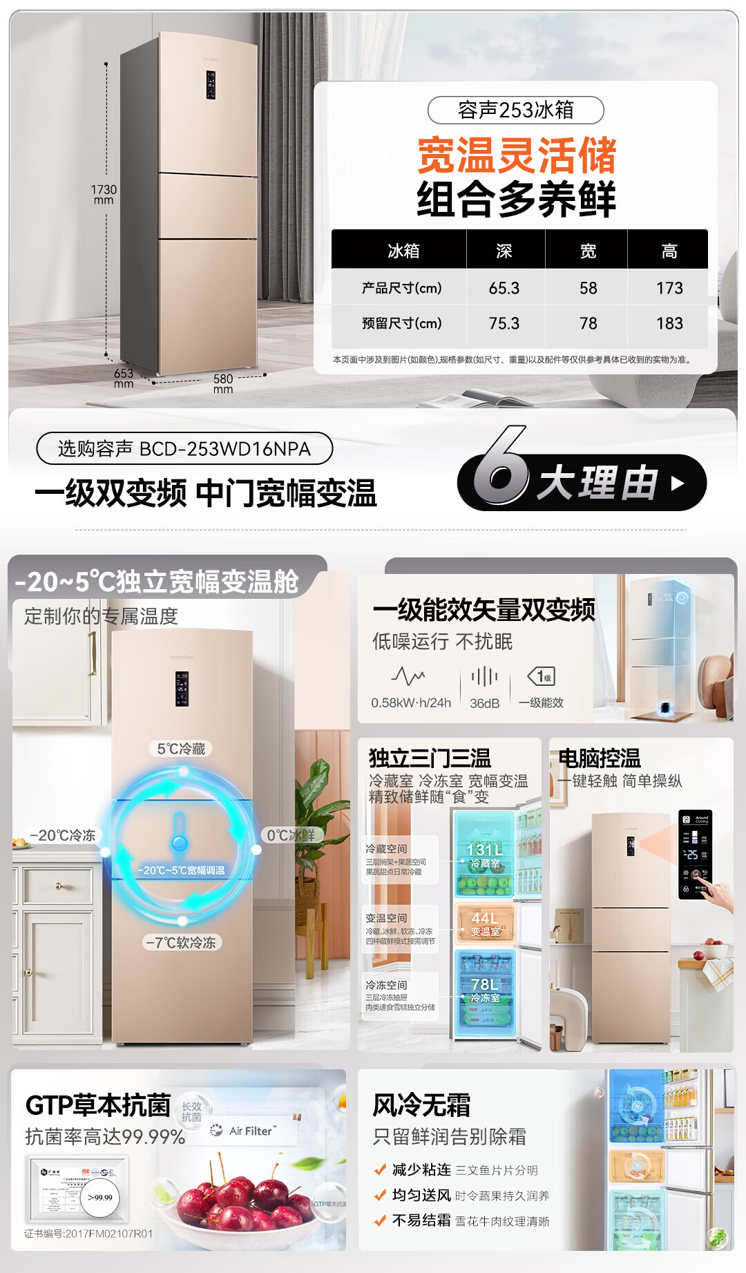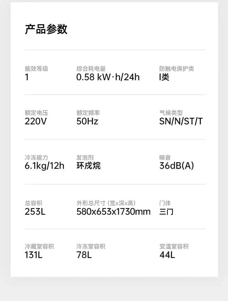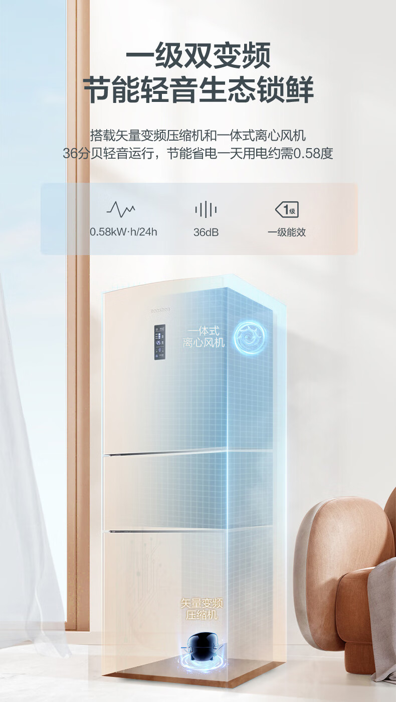 • 商品名称:容声253L三开门小冰箱小户型超薄一级能效风冷无霜变频节能家用璀璨金BCD-253WD16NPA BCD-253WD16NPA/台