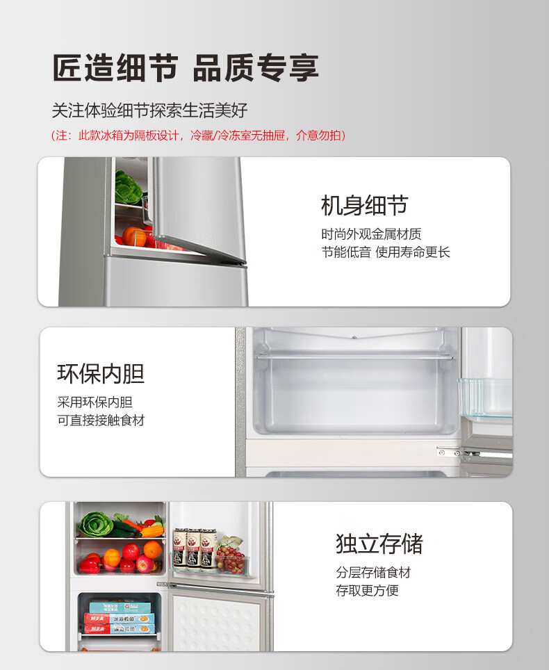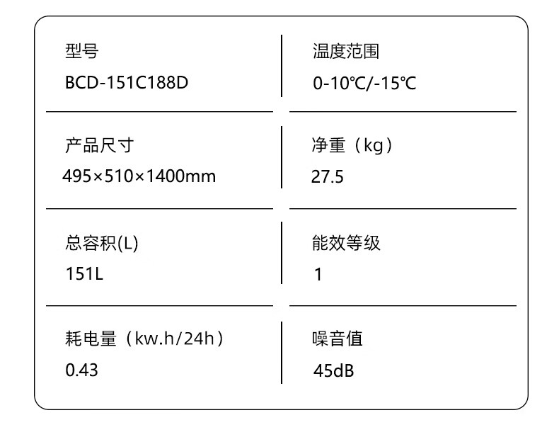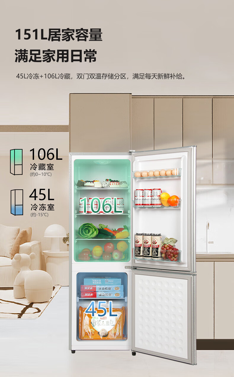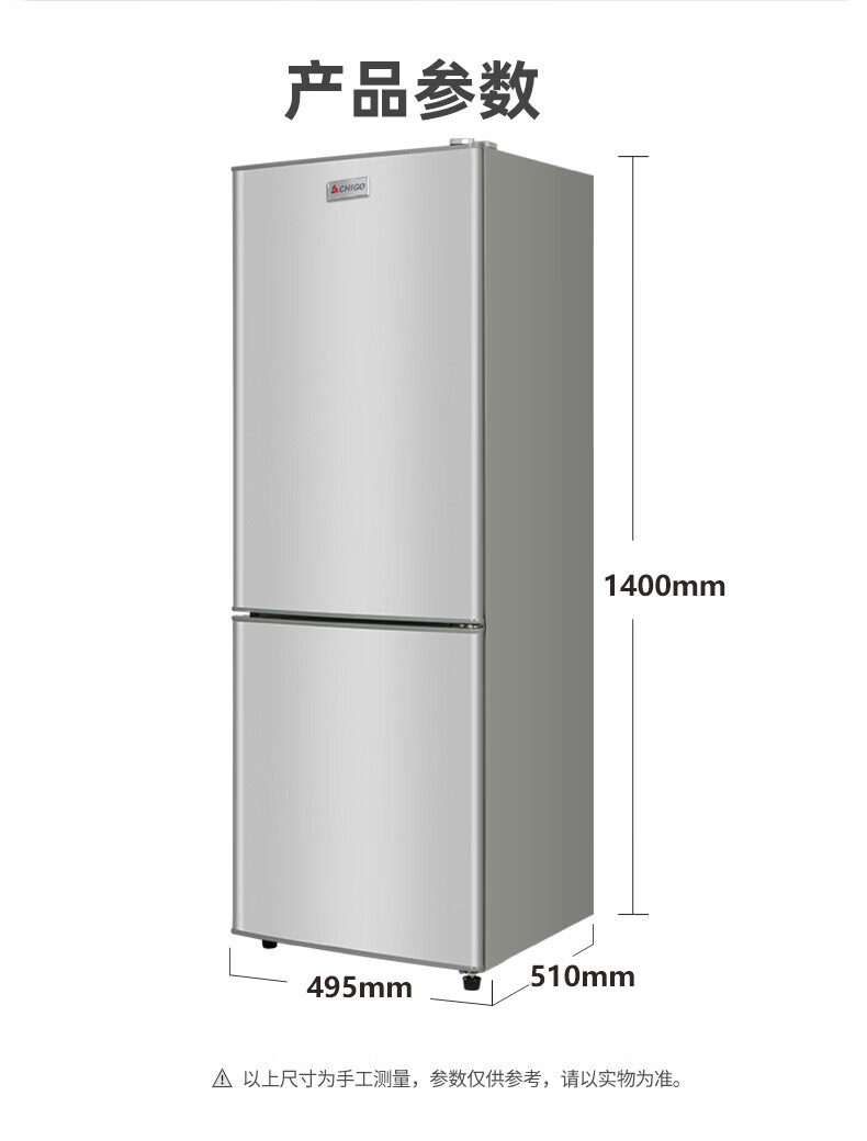 • 商品名称:志高(CHIGO)双门冰箱 151升两门宿舍租房小户型家用冷藏冷冻小冰箱 节能保鲜低噪 BCD-151C188D BCD-151C188D/台