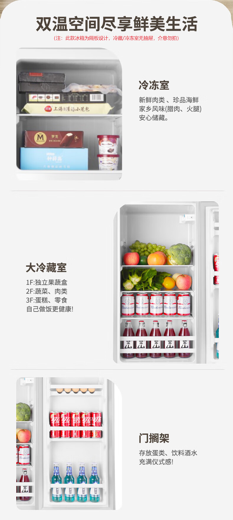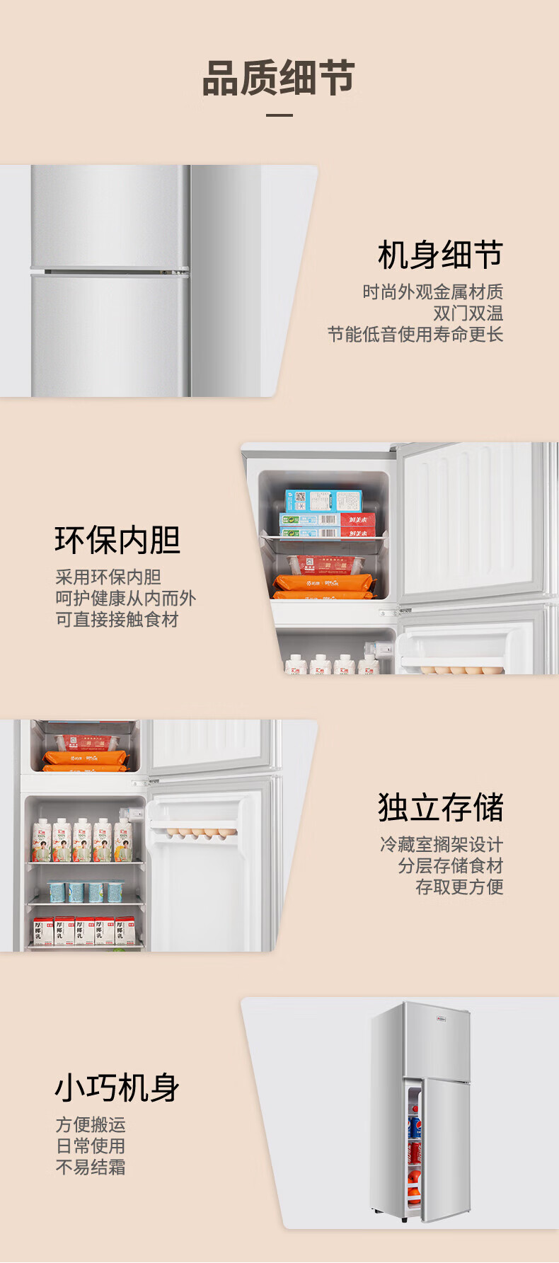 商品名称: 志高(CHIGO)双门冰箱 118升两门宿舍租房小户型家用冷藏冷冻小冰箱 节能保鲜低噪BCD-118A158JD银色 BCD-118A158JD/台