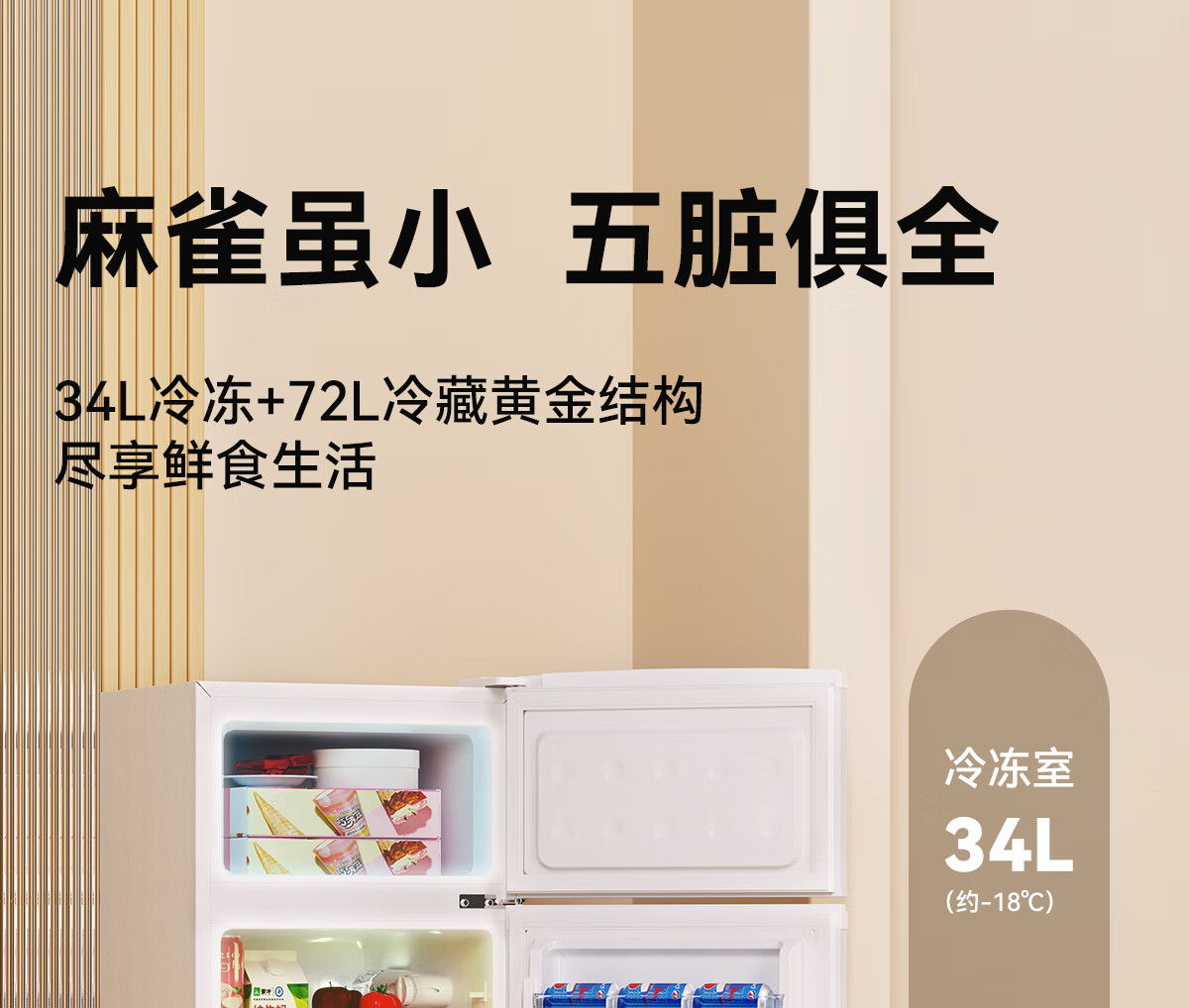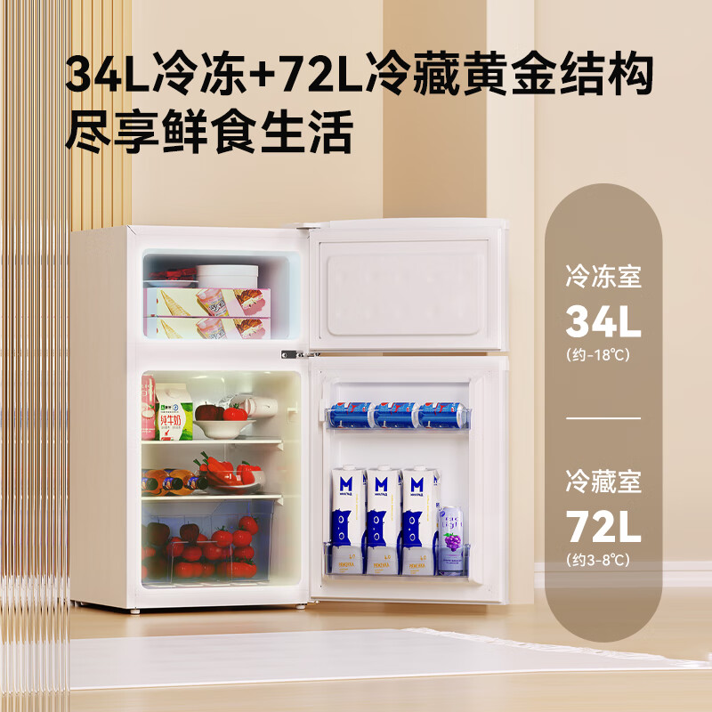 家用电器  > 大家电  > 冰箱  >  荣事达/Royalstar  >  荣事达(Royalstar)106升两门双门二门冰箱节能低音小型家用电冰箱迷你宿舍租房小巧不占地两天仅约一度电BCD-106A176 BCD-106A176/台