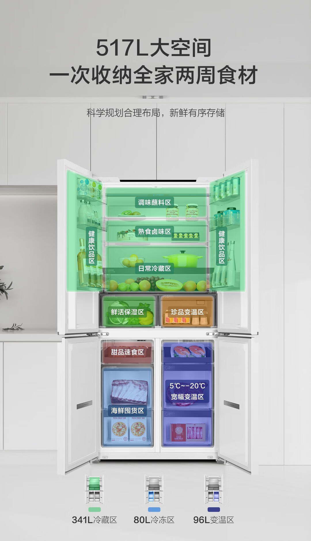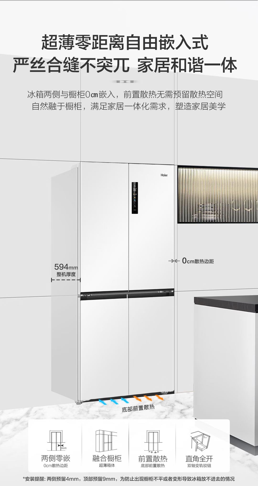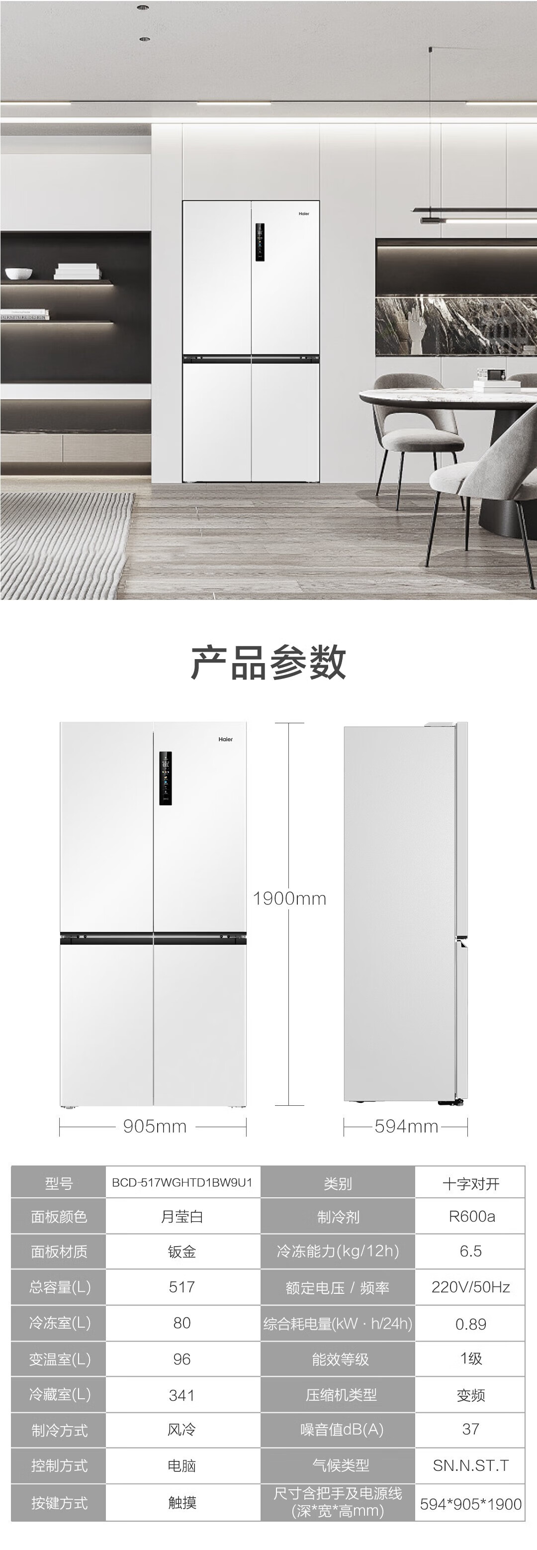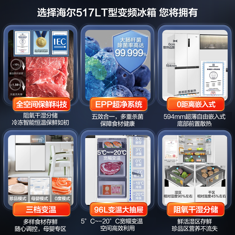 • 商品名称:海尔517升 超薄零嵌入十字门超薄零距离自由嵌入式冰箱全空间保鲜超净干湿分储区 BCD-517WGHTD1BW9U1 BCD-517WGHTD1BW9U1/个
