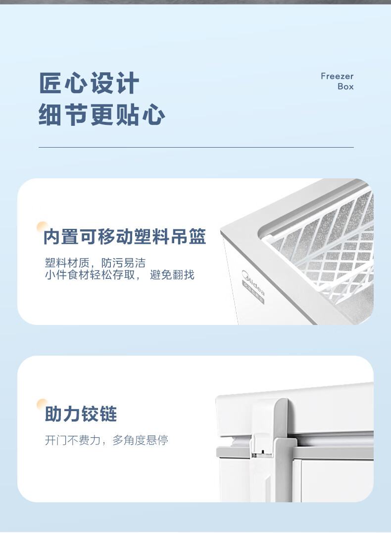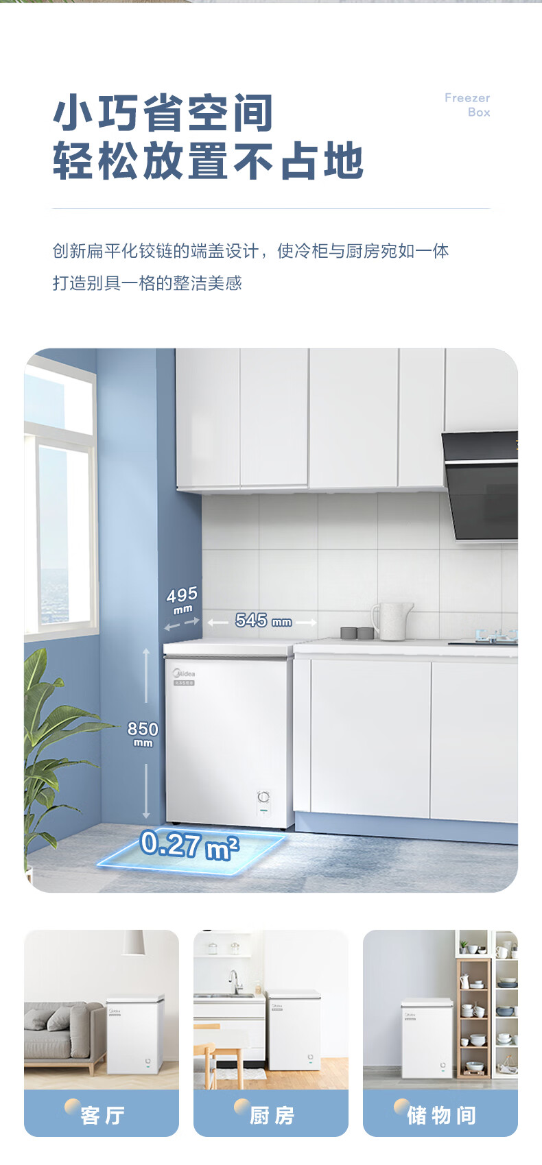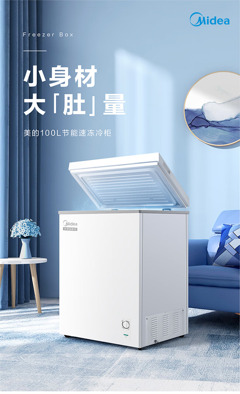 商品名称: 美的(Midea)100L单温家用冰柜冷藏冷冻柜两用低霜小冰柜一级能效节能冷柜小型冰箱BD/BC-100KMD(E)焕新补贴 BD/BC-100KMD(E)/台