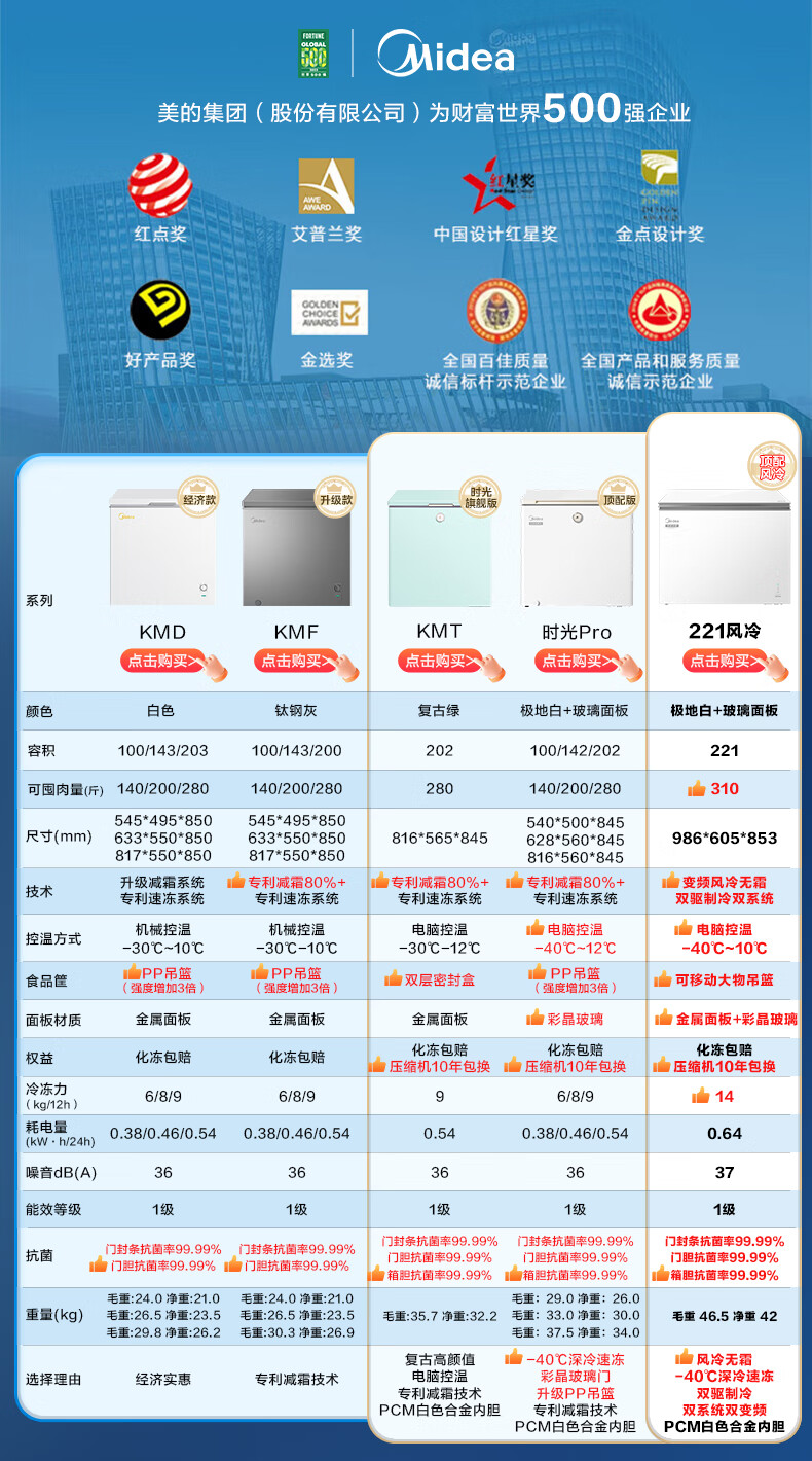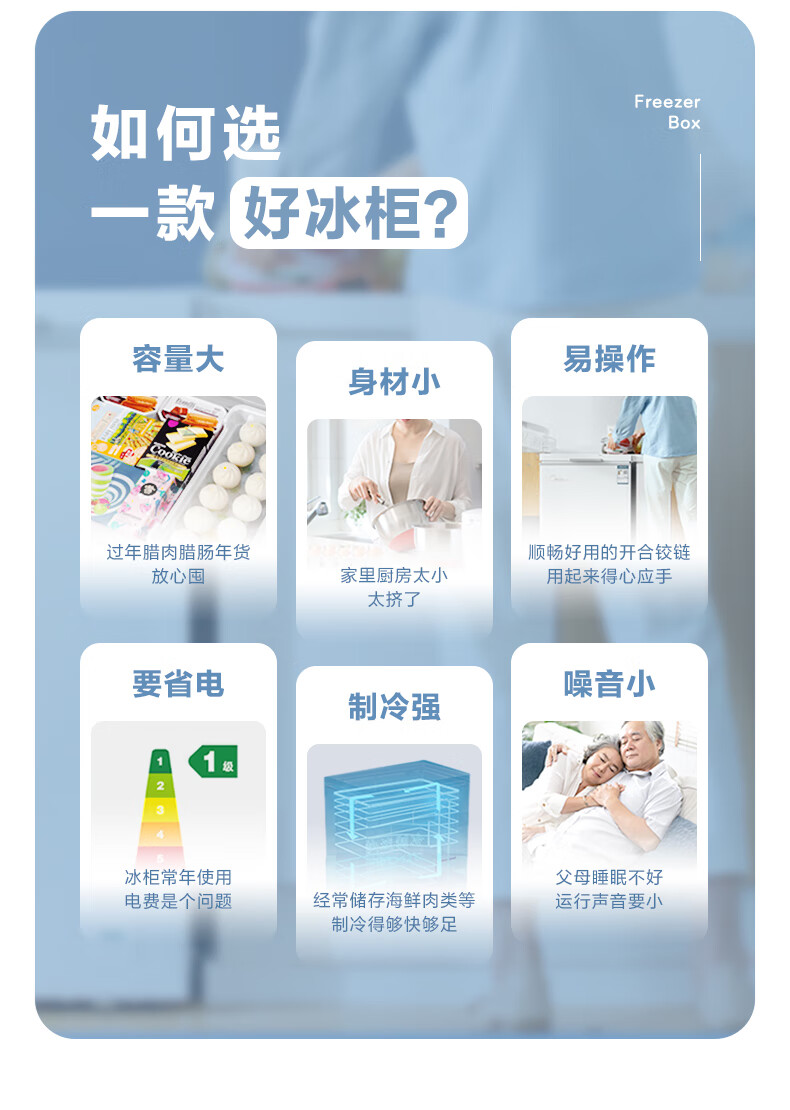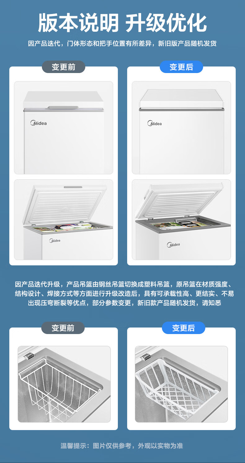 商品名称: 美的(Midea)100L单温家用冰柜冷藏冷冻柜两用低霜小冰柜一级能效节能冷柜小型冰箱BD/BC-100KMD(E)焕新补贴 BD/BC-100KMD(E)/台