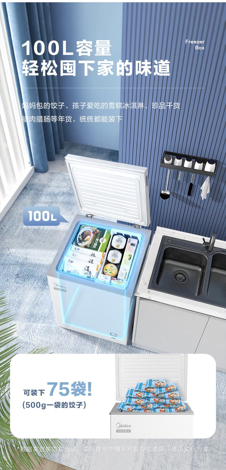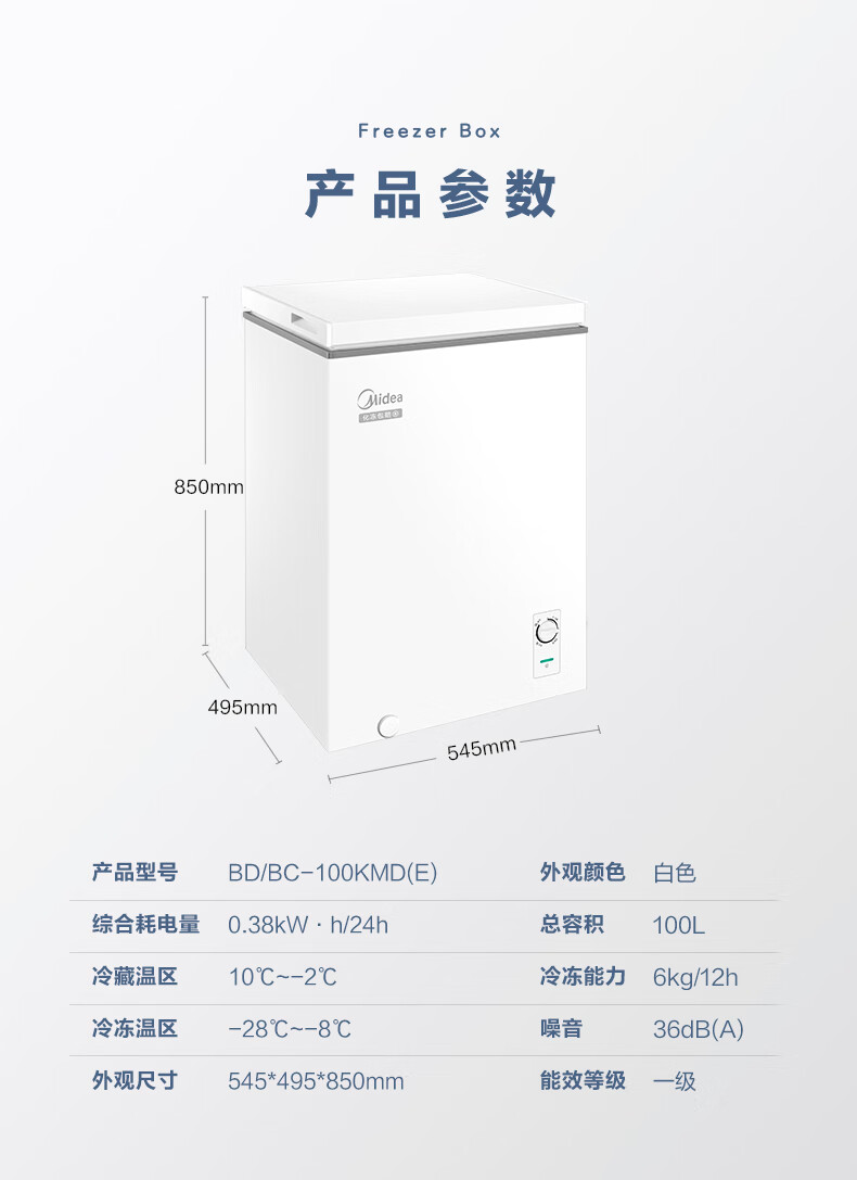 • 商品名称:美的(Midea)100L单温家用冰柜冷藏冷冻柜两用低霜小冰柜一级能效节能冷柜小型冰箱BD/BC-100KMD(E)焕新补贴 BD/BC-100KMD(E)/台