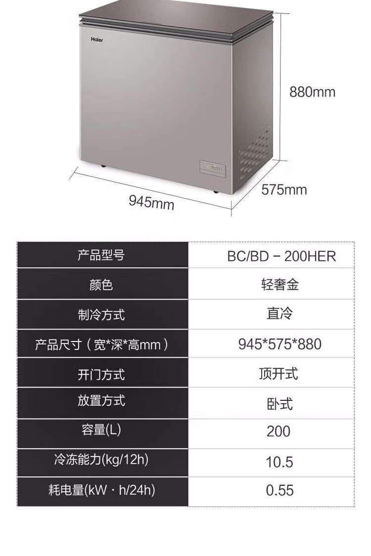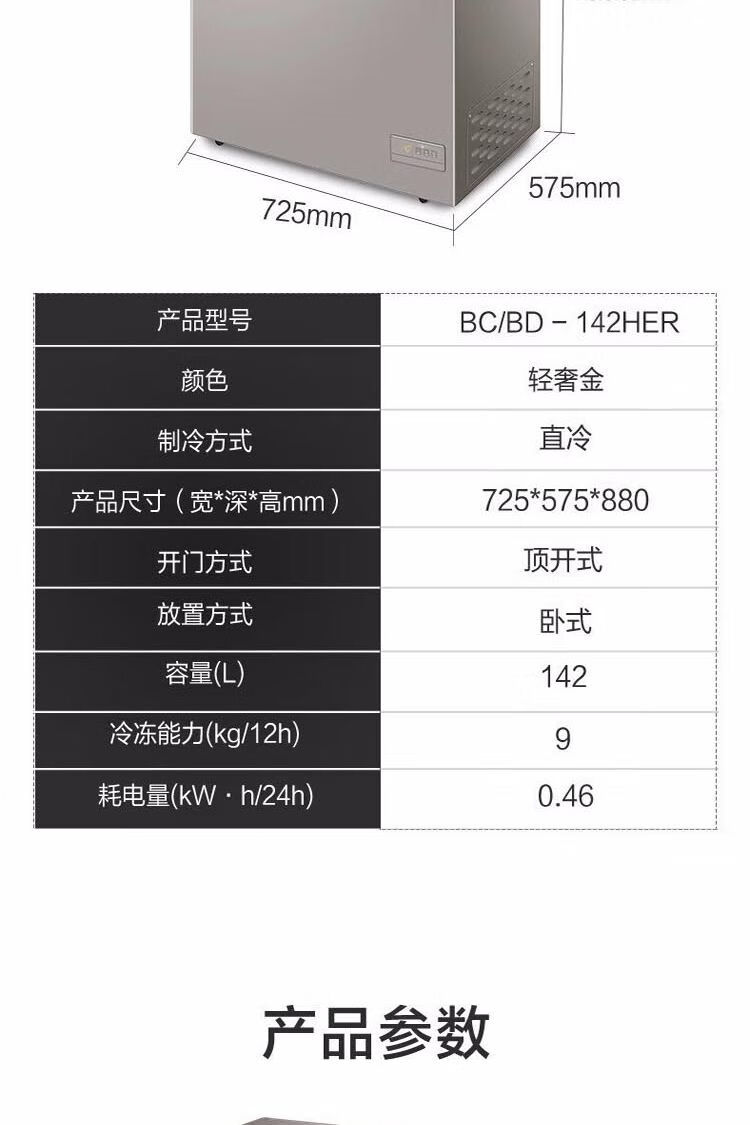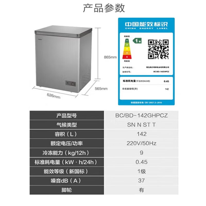 • 商品名称:海尔(Haier)家用商用厨房迷你小冰箱 一级能效小型冷冻柜节能小冰箱 142升带脚轮筐冻200斤肉142GHPC BC/BD-142GHPC/台