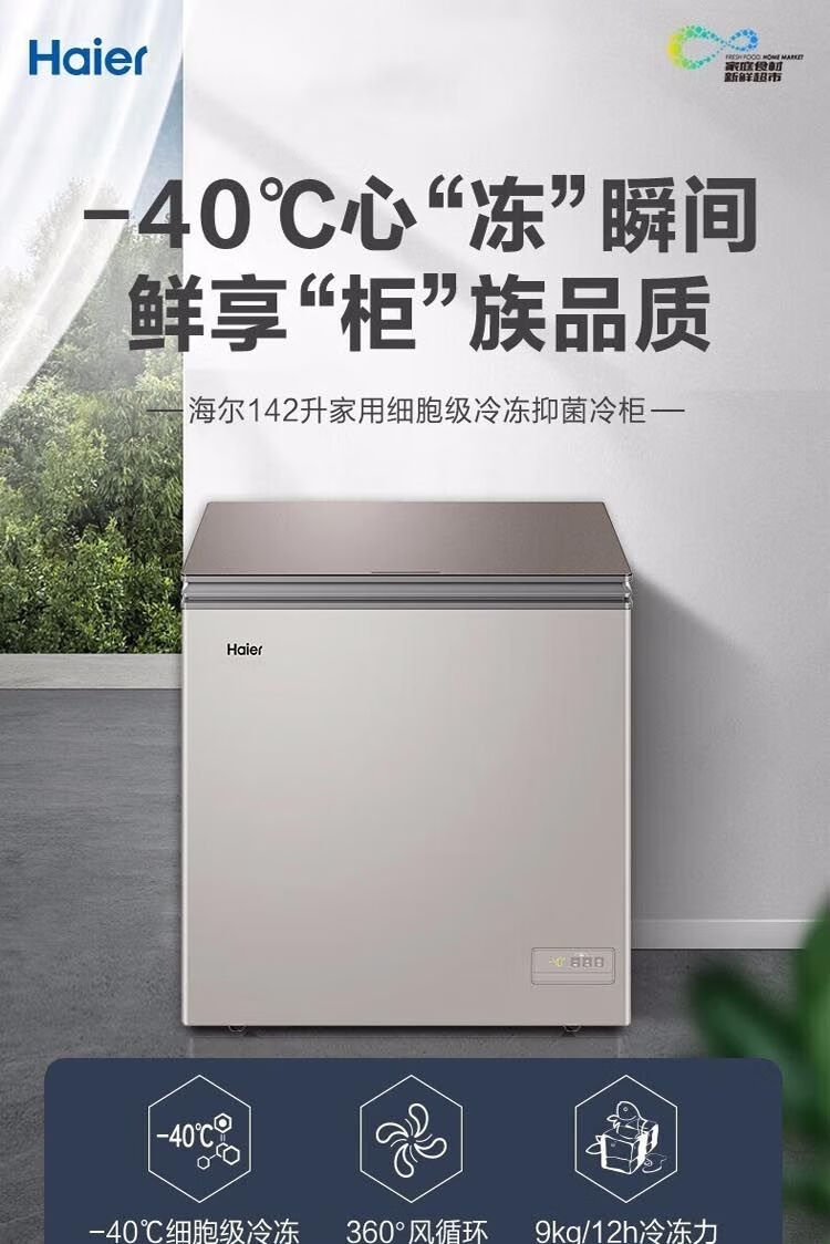 海尔(Haier)家用商用厨房迷你小冰箱 一级能效小型冷冻柜节能小冰箱 142升带脚轮筐冻200斤肉142GHPC BC/BD-142GHPC/台