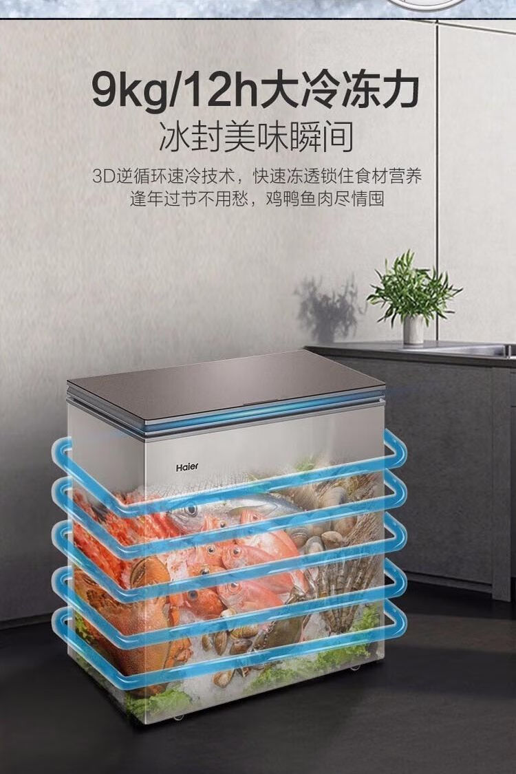 家用电器  > 大家电  > 冷柜  >  海尔/Haier  >  海尔(Haier)家用商用厨房迷你小冰箱 一级能效小型冷冻柜节能小冰箱 142升带脚轮筐冻200斤肉142GHPC BC/BD-142GHPC/台